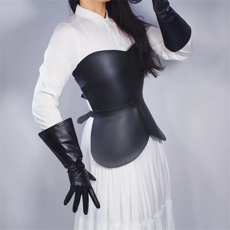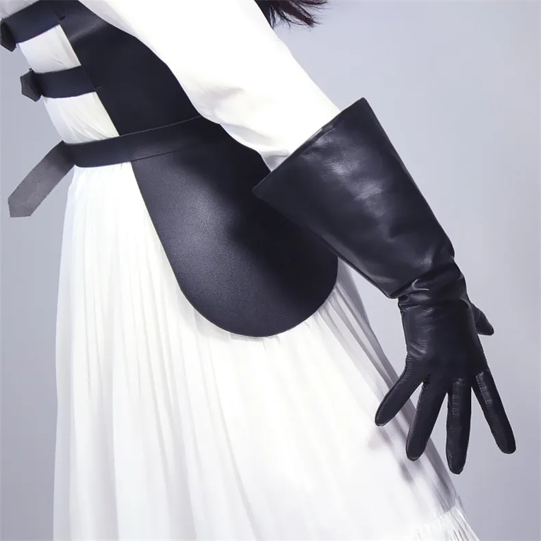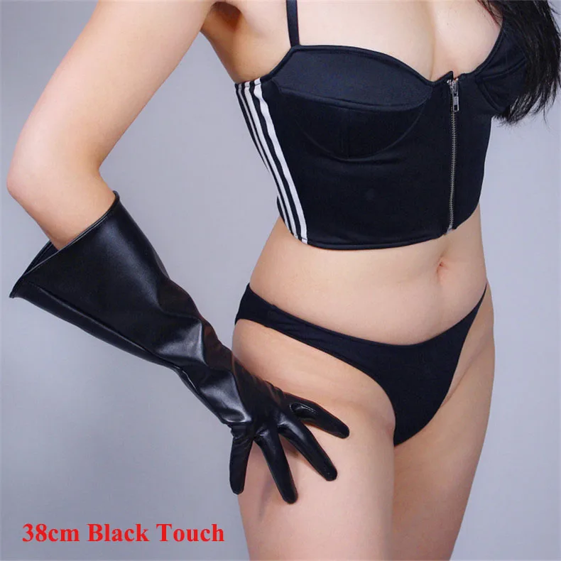 Длинные перчатки 38 см с широкими манжетами и рукавами-фонариками из искусственной кожи белого цвета для мужчин и женщин, унисекс WPU142
