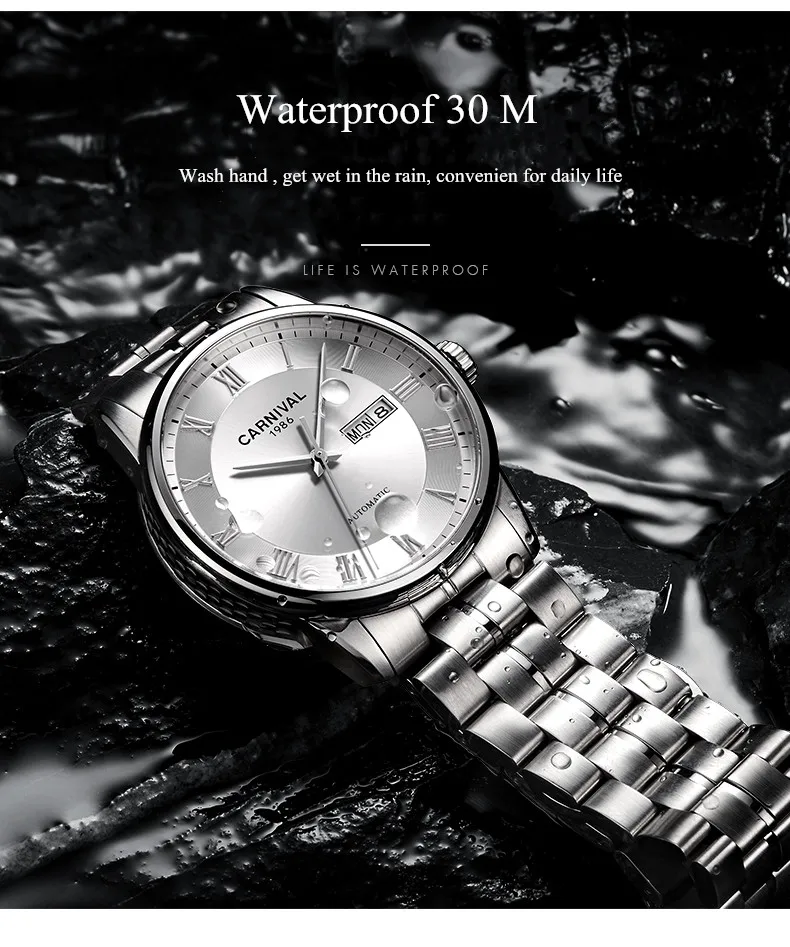 Часы мужские механические с сапфировым стеклом, водонепроницаемые, стальные