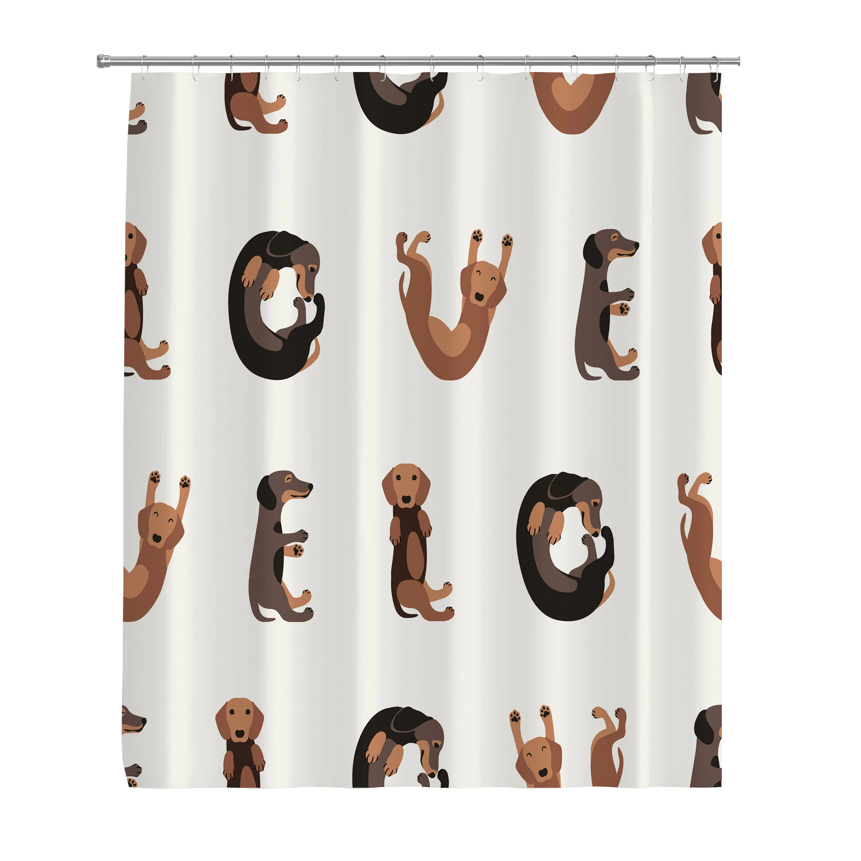 Коричневые животные плоский узор слово любовь собаки породы такса Барсук породы Водонепроницаемая занавеска для ванной полиэстер Ткань 72x72 дюймов