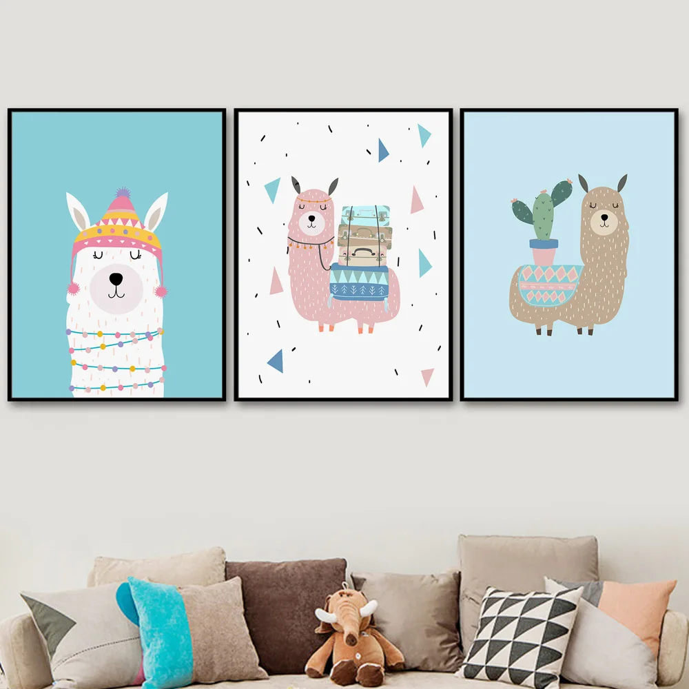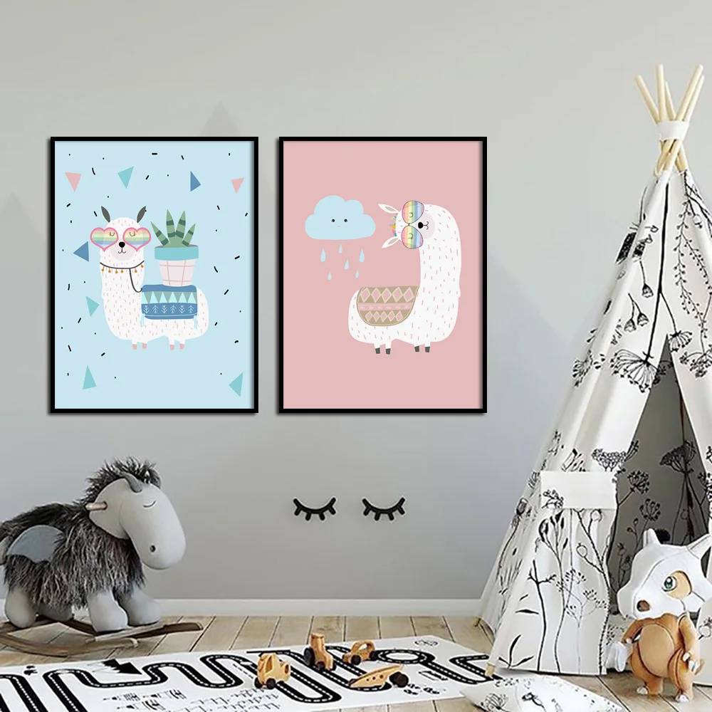 Мультяшная Милая Альпака лама очки кактус настенная Картина на холсте скандинавские плакаты и принты настенные картины декор детской комнаты