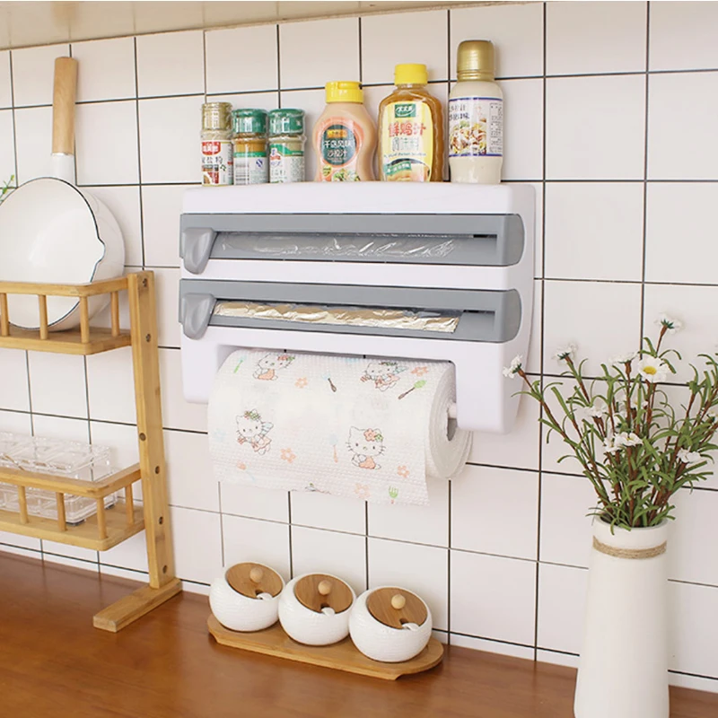Обертка ping резак для бумаги цепляющаяся пленка для соуса стеллаж для хранения бутылок жестяная фольга держатель для бумажных полотенец кухонная полка пластиковая обертка режущий инструмент держатель для фольги и плен