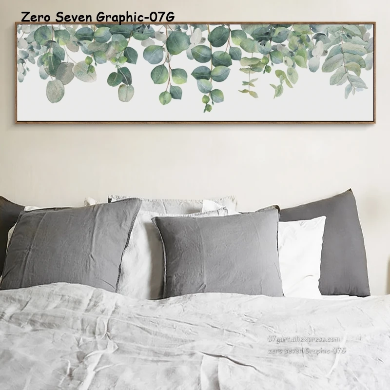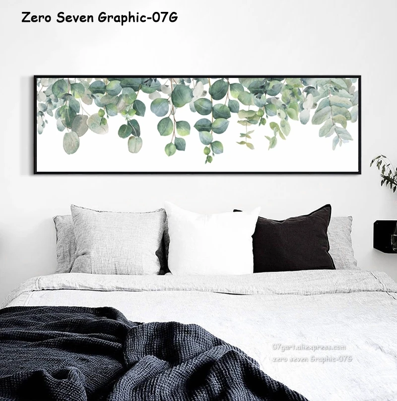 Картина на холсте, Скандинавская свежая зеленая акварель, лист эвка...