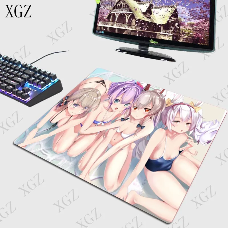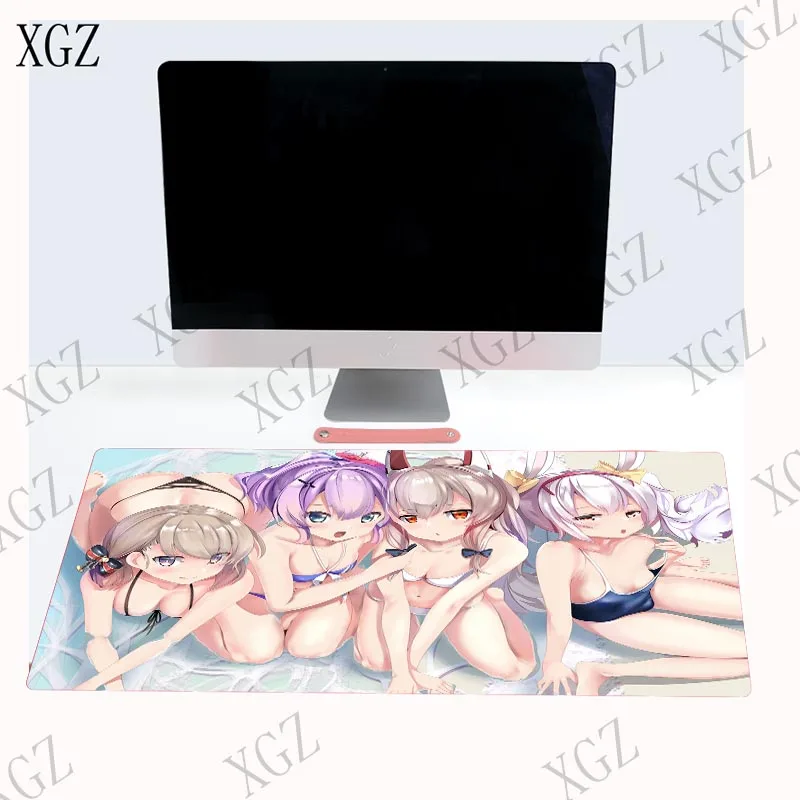 Большой игровой коврик для мыши XGZ с аниме сексуальные девушки, клавиатура с застежкой по краю, Настольный коврик, коврик для мыши, Офисная Подушка, большой 60 см, 70 см, 80 см, 90 см
