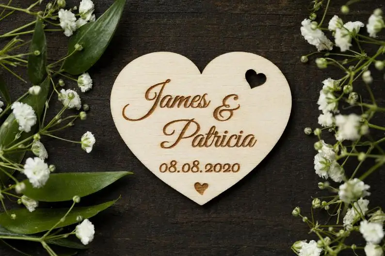 Деревянные таблички с сердцем на заказ, лазерная резка имена гостей...