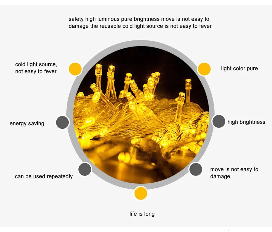 110V / 220V рождественские огни 8 режимов ЕС штекером с американским штекером с использованием праздник струнные лампы, герлянда, рождественские украшения для домаОписание товара:Мини и художественный внешний вид, легко носить с собой. Разноцветный светильник выглядит очень красиво ночьюСветодиодный светильник 10 м/20 м/30 м/50 м/100 м. Низкое энергопотребление, безопасное и надежное, управление одной кнопкойДизайн, удобнее в использовании.Параметры продукта:Материал: светодиодный светильникДлина шнура: 10 м/20 м/30 м/50 м/100 мВсего светодиодные лампы: 100 светодиодов/200 светодиодов/300 светодиодов/400 светодиодов/800 светодиодовPulg: штепсельная вилка США, штепсельная вилка европейского стандартаИзготовленный из высококачественного материала, гибкий и простой в хранении, струнный светильник обладает высокой яркостью, низким излучением и не загрязняет окружающую средуПримечание: при размещении заказа, пожалуйста, обратите внимание на выбор напряжения и вилки. У нас есть две спецификации. Напряжение американской вилки составляет 110 В, а напряжение Европейской вилки-220 В.