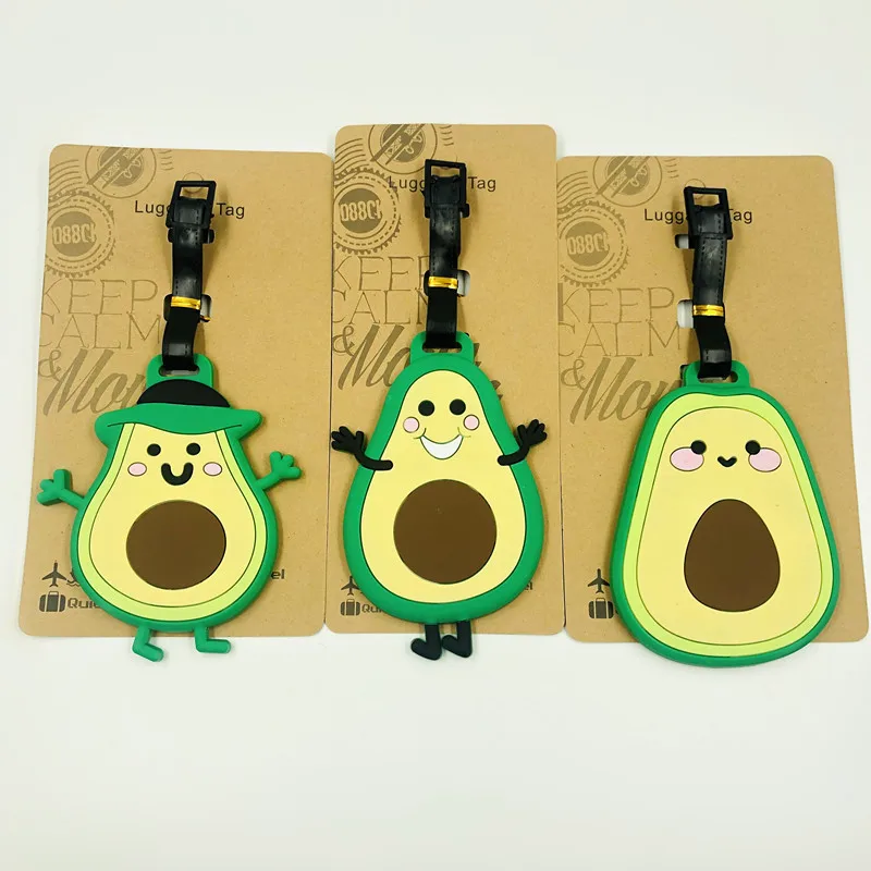 Новинка, багажная бирка авокадо, Мультяшные дорожные аксессуары, силикагель, чемодан, держатель ID, адрес, багажная бирка, переносная этикетка, сумка