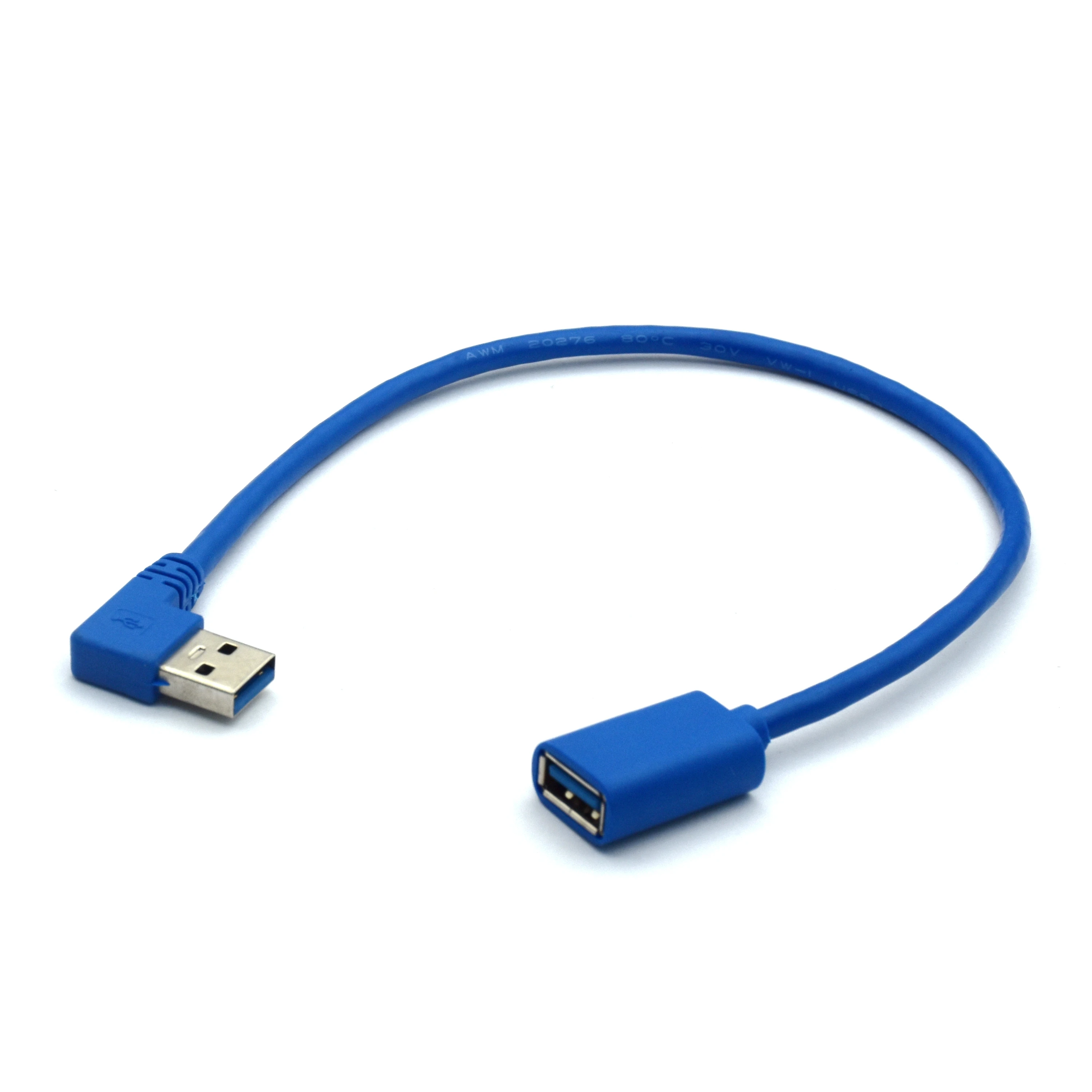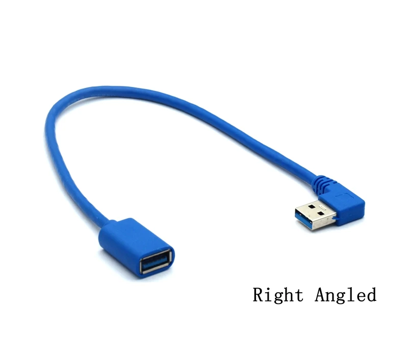 1 шт., USB 3,0, правый и левый угол 90 градусов, удлинитель, кабель, USB-кабели, синий цвет, 30 см, 50 см