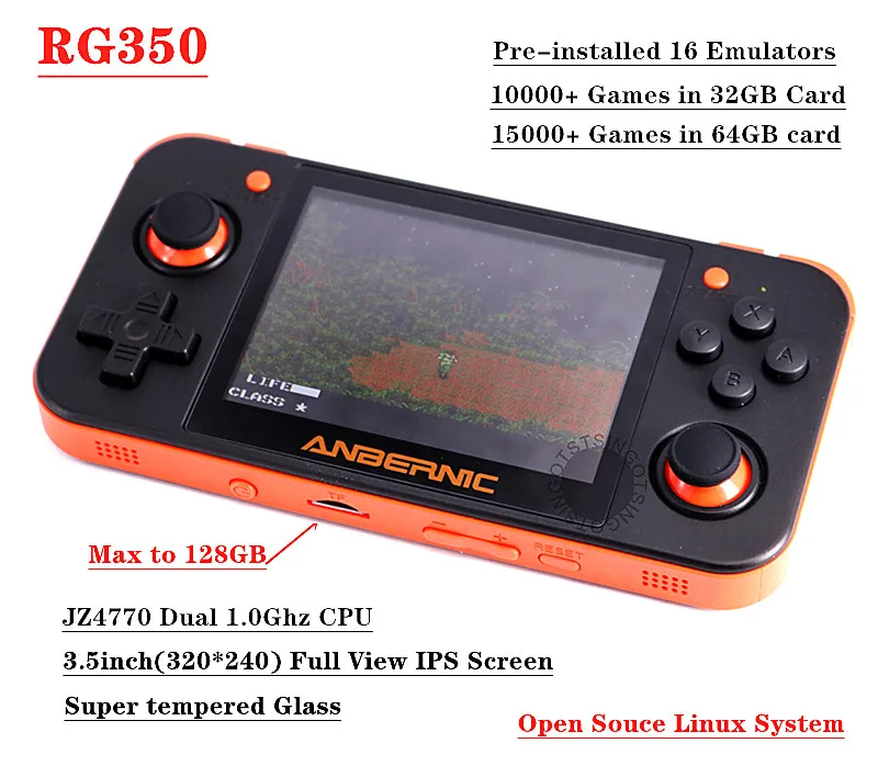 Экран: 3,5 дюймов, 320*240, с полным обзором HD IPS Экран.CPU: JZ4770 Dual 1,0 GHz.Оперативная память: 512M DDR2Внутренняя память: 16 ГБ 32 ГБ/64 ГБ карта может быть choiced, поддержка tf-карты макс. до 128 ГБ.Батарея: литий-ионный аккумулятор 3,8 V 2500 мА/ч, ЁмкостьПоддержка ТВ HDMI выход сейчас.Поддержка внешнего геймпада, поддержка двойного плеера.Добавьте кнопку L2R2 JOG.Двойной джойстик, кнопка переключения работает более комфортно.Поддержка просмотра фильмов, видеоплеера и других IPK.Игры на 16 ГБ-5000 +, на 32 ГБ-10000 +, на 64 ГБ-15000 +. Все игры мы бесплатно помогаем заказчику записывать на sd-карту.