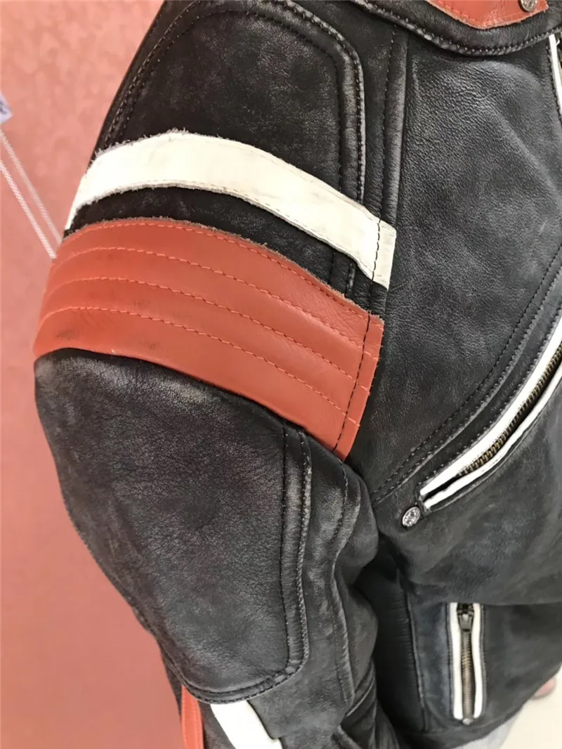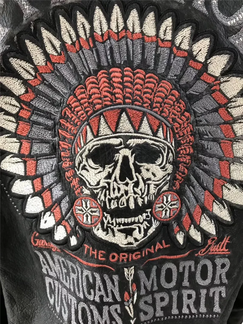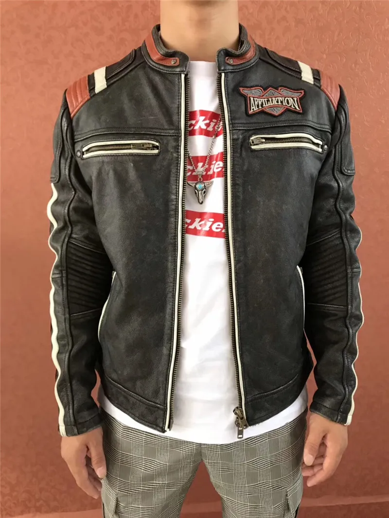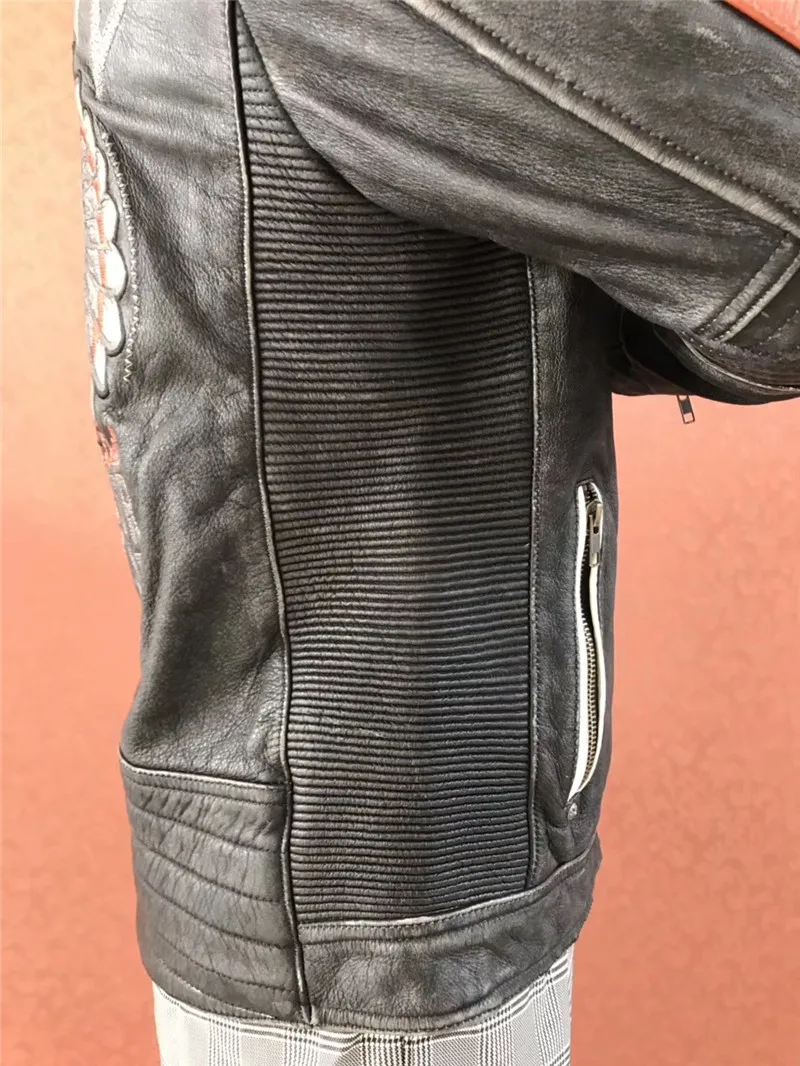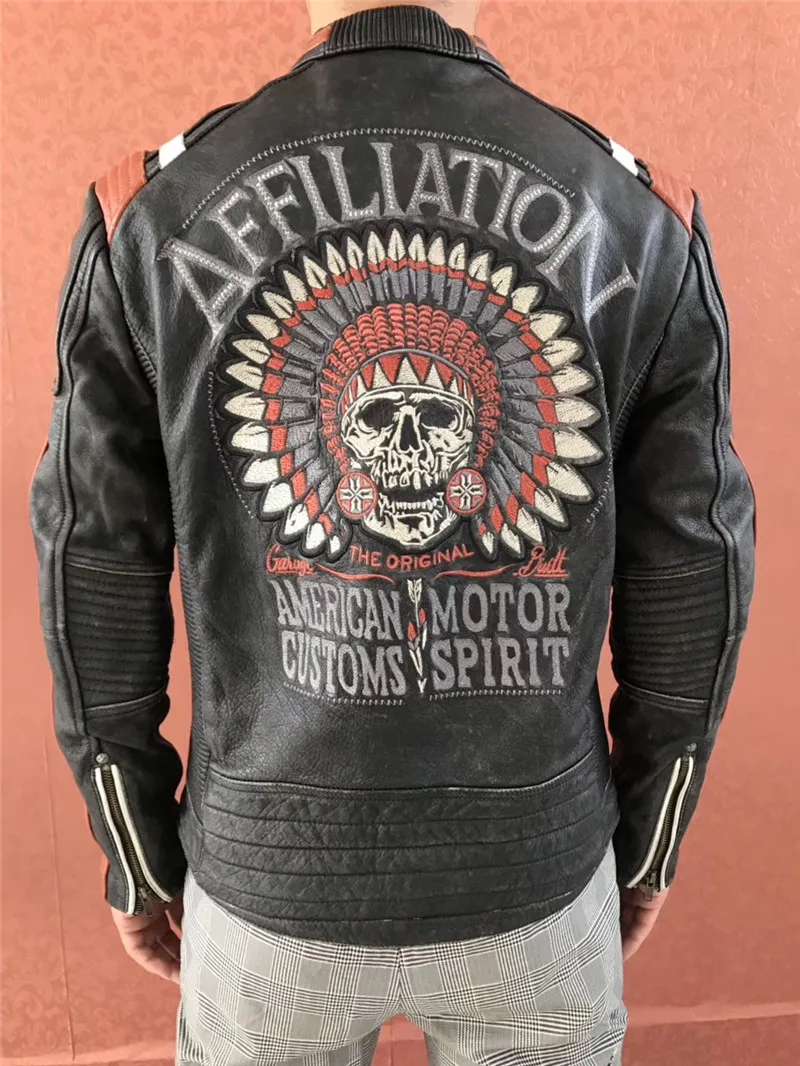 Супер предложение! AFF-01 прочитать описание! Мужская куртка из натуральной коровьей кожи, байкерская куртка с вышивкой, Азиатский размер