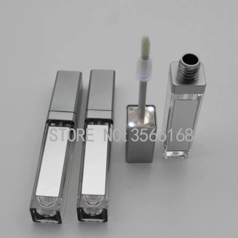Пустая Косметика сделай сам, черныйсеребристый квадратный тюбик для блеска для губ со светодиодной подсветкой, зеркалом, бутылочкой glair, 103050 шт., 7,5 мл