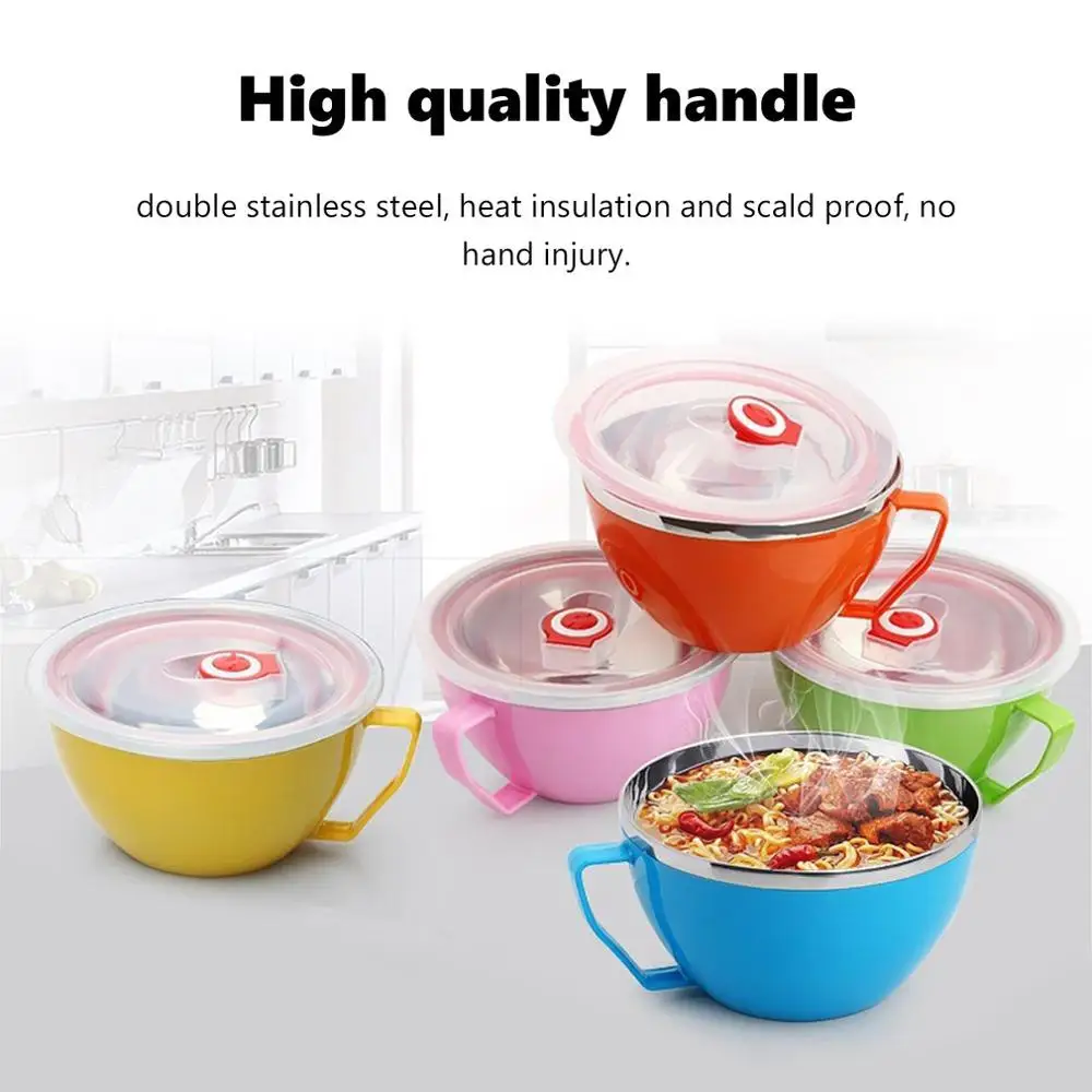Миска для лапши быстрого приготовления из нержавеющей стали с двойной крышкой и ручкой, чашки для лапши, рамен, суповая миска, изолированная свежая коробка для риса