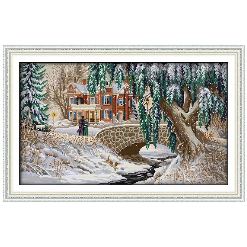 Пейзаж, покрытый снегом, картина, рассчитана на холст 11CT 14CT, Набор для творчества, Китайская вышивка крестом, наборы для вышивки