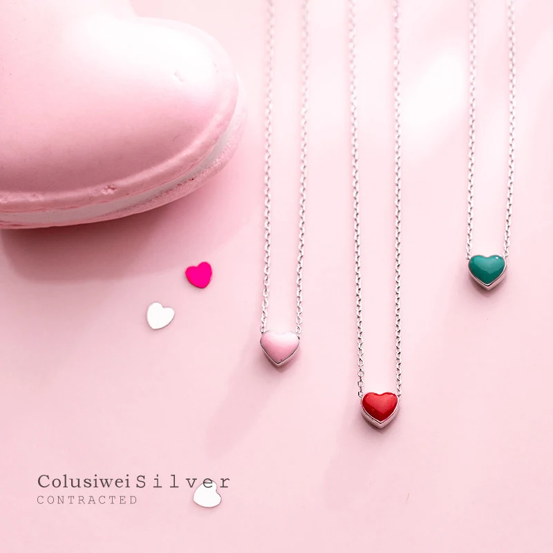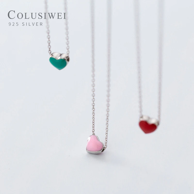 Colusiwei серебрянный простой милый эмали в форме сердца короткое ожерелье для женщин из натуральной 925 стерлингового серебра Корея Стиль, модное ювелирное изделие
