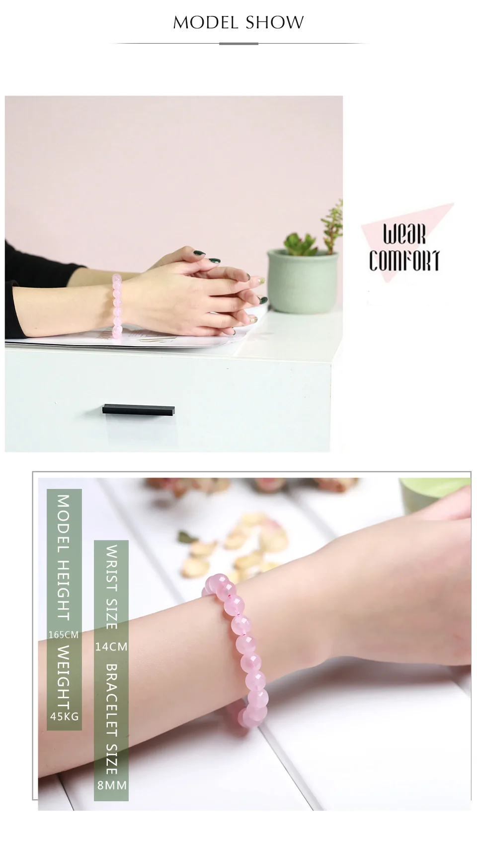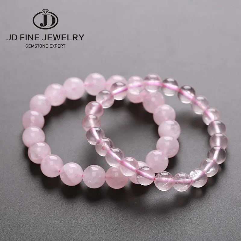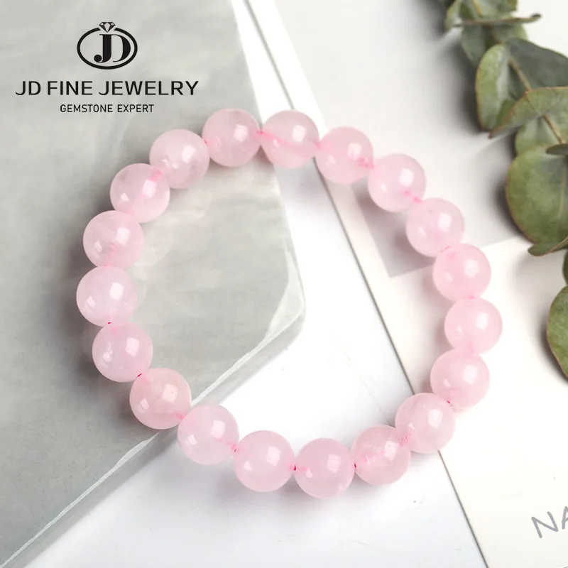 Женский браслет из розового кварца JD, эластичный браслет с натуральным камнем, ювелирные изделия для любимых, подарок ручной работы, Лолита