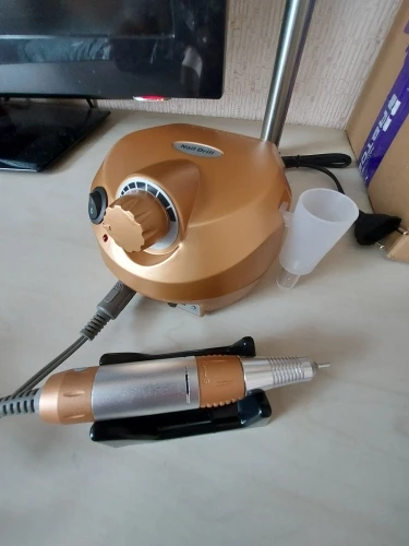 К покупке рекомендую! Товар отличный, доставка быстрая. В Тюмень пришло за неделю. Продукцией довольна, все проверила, все работает отлично, все комплектующие на месте. Жужжит тихо, ручка не греется, педаль работает. Мощности хватает на полноценный маникюр. Спасибо!