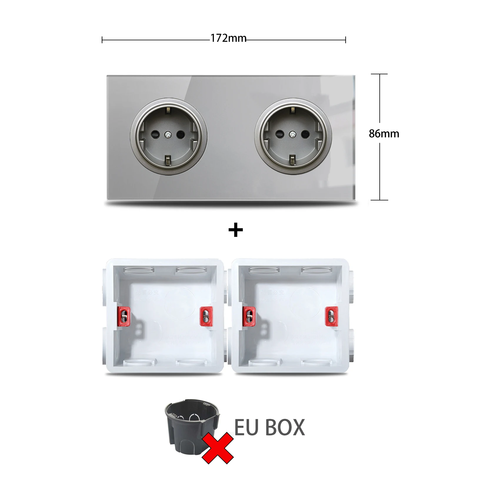 Wallpad L6 серая Стеклянная Двойная 2-полосная розетка европейского стандарта, электрическая розетка Schuko, двойная розетка, 172*86 мм