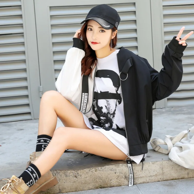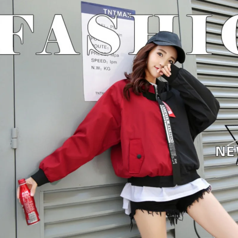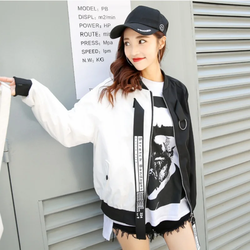 Куртка-бомбер женская двухцветная составного кроя, повседневная осенняя куртка на молнии, с нашивкой сзади, с надписью и лентой, hc
