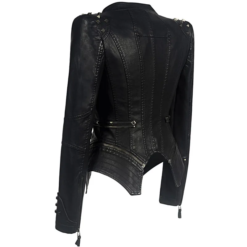 Женская мотоциклетная куртка из ПУ кожи, с заклепками