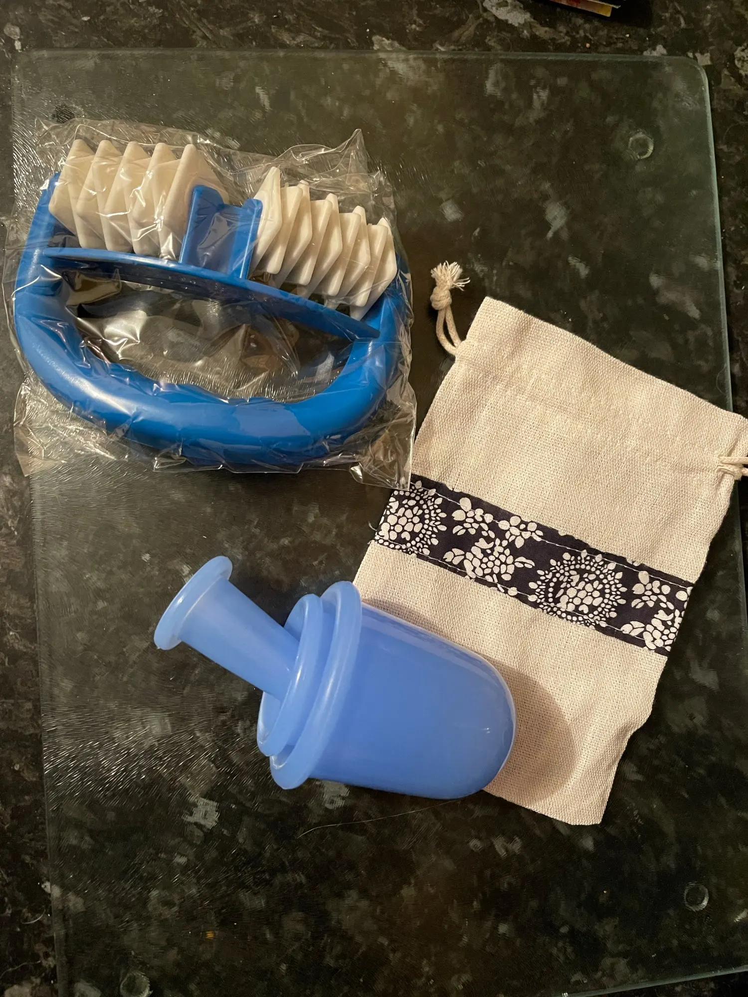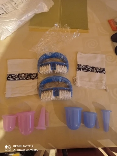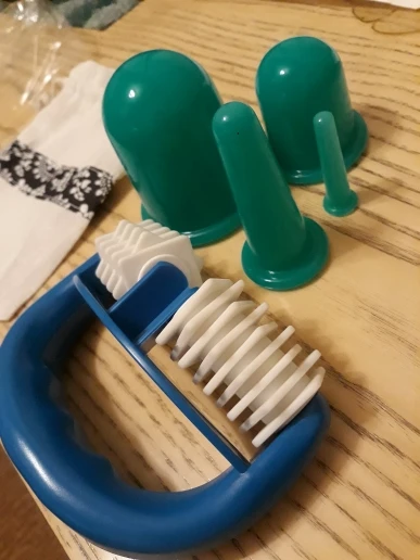 Пришло достаточно быстро в почтомат миист, с продавцом не общалась, не было нужды. Банки оказались достаточно упругими и плотными, на фото выглядело более хиленько. Заказывала в основном для комплекта баночек, синяя эта штучка была для меня как приятный бонус которому сразу нашлось применение. Подарила маме, она говорит отлично снимает напряжение с уставших ног и рук после тяжёлого рабочего дня. Так что одим товаром теперь две девушки остались довольны. Баночки ещё не пробовала но попробовала на руке и лице присасываются очень хорошо. За мешочек отдельное спасибо, очень удобно будет хранить их там. Короче товаром довольна. Очень хороший комплект за такие деньги.