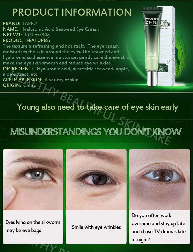 Морские Водоросли против морщин для ухода за областью вокруг глаз антивозрастной крем для удаления кругов под глазами для удаления темных кругов под глазами Гиалуроновая кислота кремы укрепляющий лица макияж глаз уход за кожей