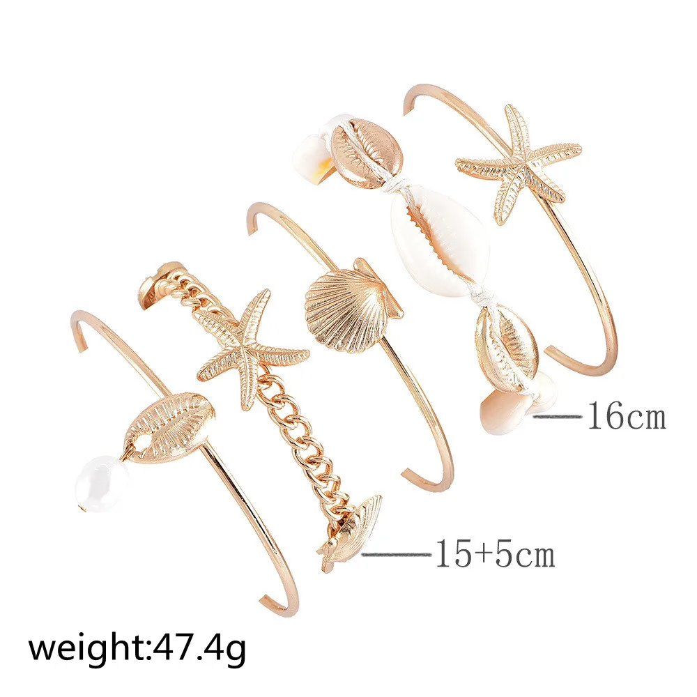 Браслет-цепочка женский с жемчугом и морской звездой, 5 шт.компл.