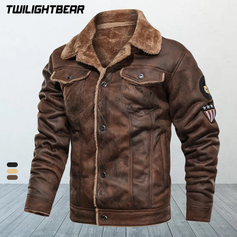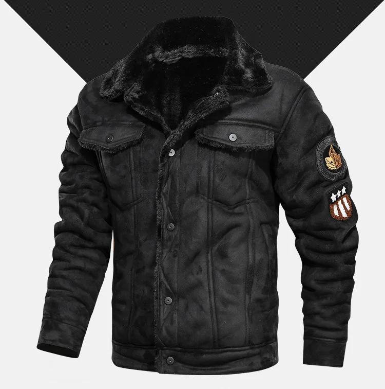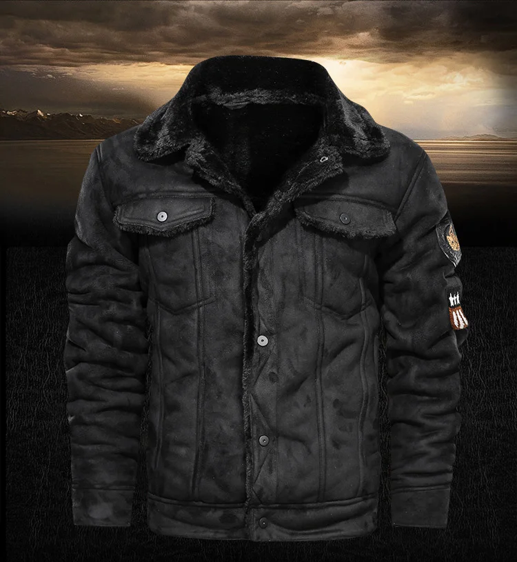 Куртка-бомбер мужская замшевая, зимняя, Байкерская, AYH01