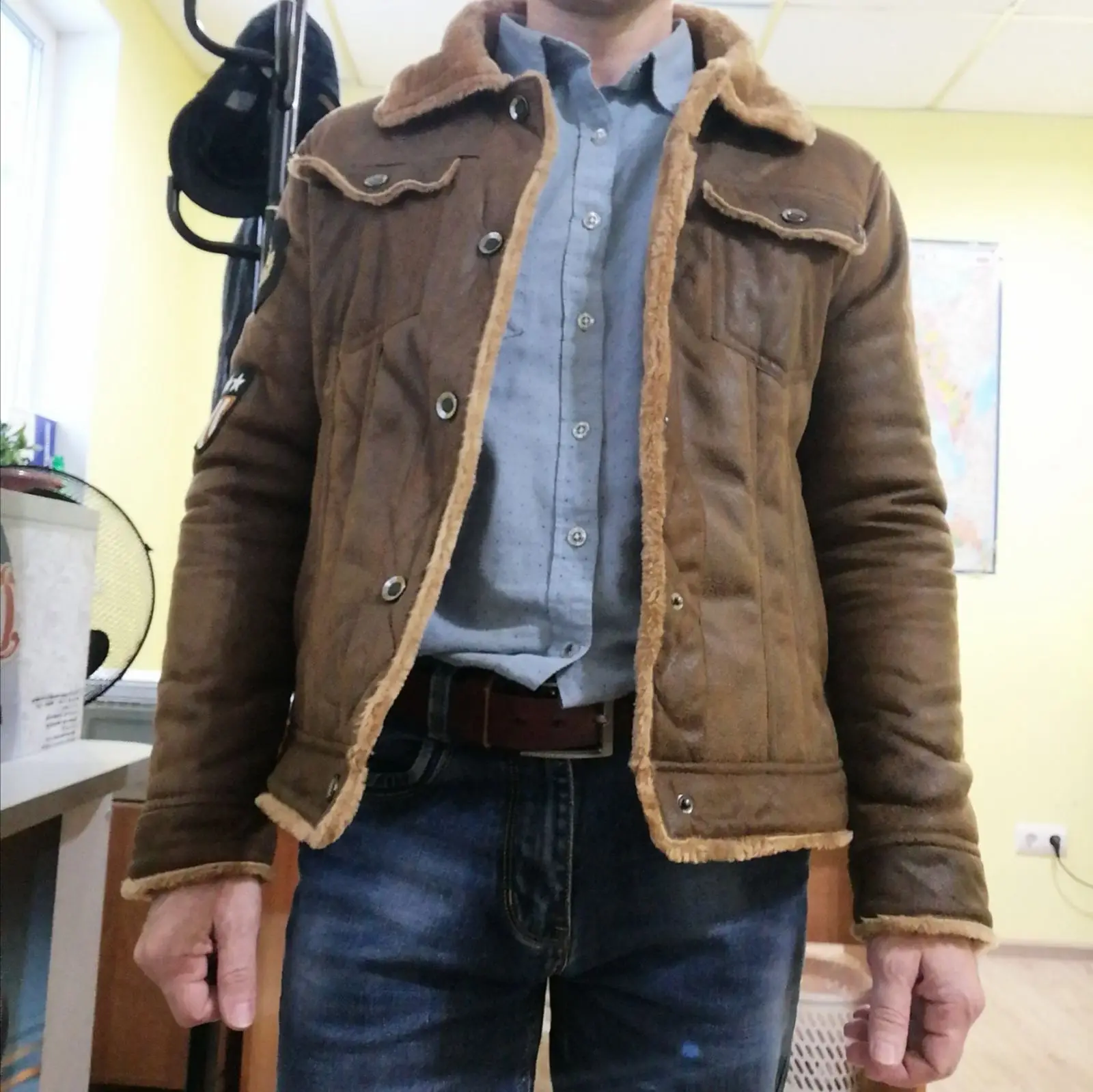 Куртка отличная, отличный материал. Размер маленький, даже при условии измерения. Всегда выбирайте на один размер больше. E.g. Это ваша Таблица размеров 2XL, закажите 3XXL Я 6'4, я заказал XXL, он немного маленький, он будет лучше подходить XXXL, но мой сын будет рад получить его :), также продукт может улучшиться, если он имеет подкладку из коричневого шерпа. Спасибо. Отличная куртка