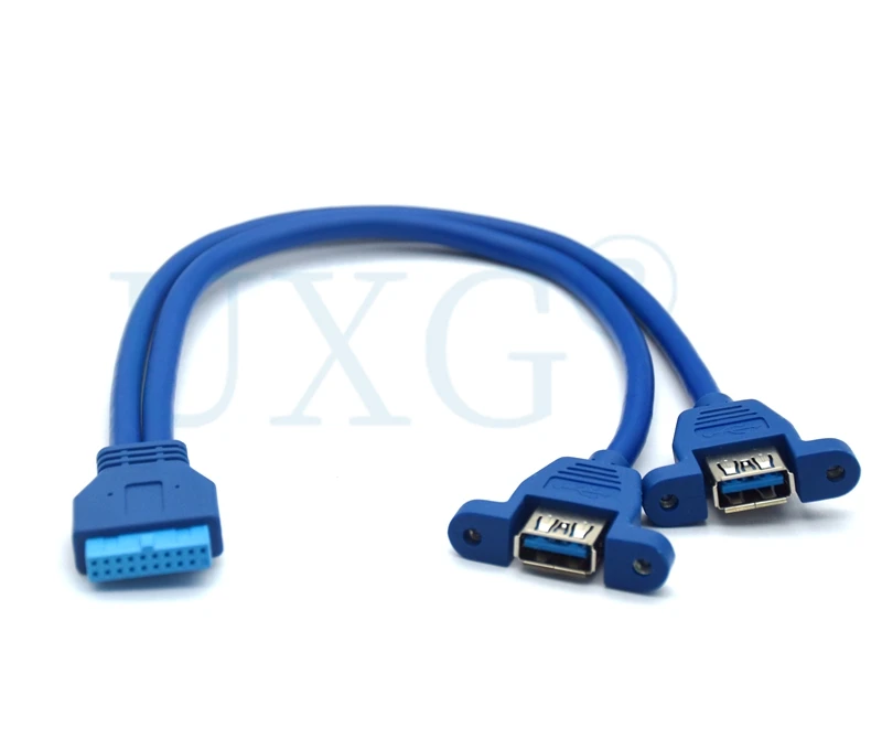 Кабель-удлинитель с двумя портами USB 3,0, 19pin, 20pin на USB 3,0, 30 см, 50 см, 80 см, 1 фут, 2 фута, с винтовым креплением