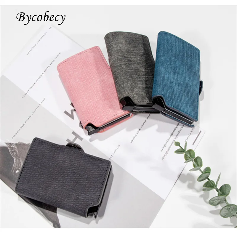 Bycobecy 2021 углеродное волокно держатели карт кошелек мужской брендовый кожаный мини тонкий кошелек сумка для денег металлический RFID Женский Тонкий Умный кошелек