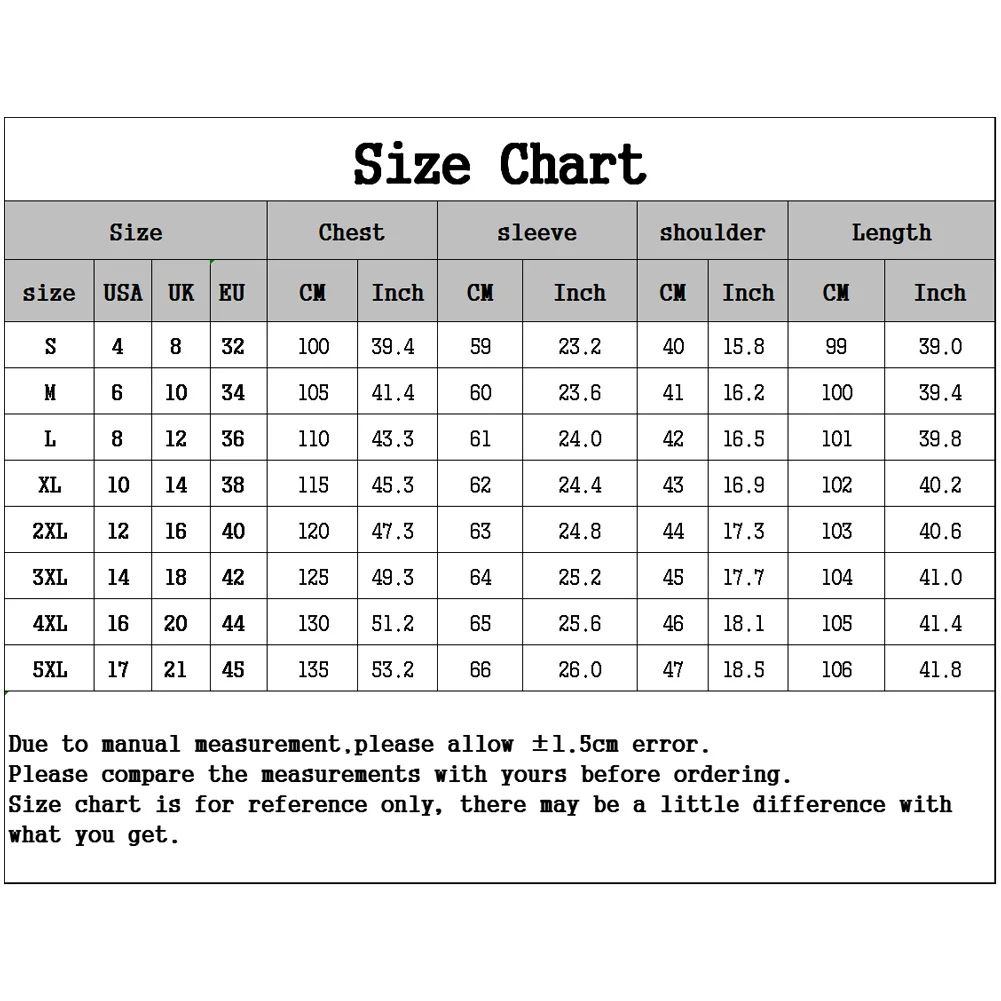 Шикарная Женская однотонная Повседневная Толстовка с капюшоном и длинными рукавами; Пальто на молнии; Верхняя одежда Характеристики: Однотонный цвет, хорошо сочетается с топами и брюками. Высококачественный материал, дышащий и удобный в носке. Дизайн с капюшоном и длинной длиной, очень стильный и может эффективно скрыть кожу ваших ног или бедер. Наименование товара: пальто Материал: акрил и спандекс Пол: женщин Тип размера: Обычный Стиль: Модный Случаи: путешествия, офис, повседневная жизнь, свидания и т. Д. Особенности: удобные, с капюшоном, универсальные Информация о размере [Наш Размер S] Обхват груди: 100 см/39,4 дюйма, ширина плеч: 40 см/15,8 дюйма, длина: 99 см/39,0 дюйма, длина рукава: 59 см/23,2 дюйма (прибл.) [Наш Размер M] Обхват груди: 105 см/41,4 дюйма, ширина плеч: 41 см/16,2 дюйма, длина: 100 см/39,4 дюйма, длина рукава: 60 см/23,6 дюйма (прибл.) [Наши Размеры L] Бюст: 110 см/43,3 ", плеча: 42 см/16,5", Длина: 101 см/39,8 ", рукав: 61 см/24,0" (прибл.) [Наш Размер XL] Обхват груди: 115 см/45,3 дюйма, ширина плеч: 43 см/16,9 дюйма, длина: 102 см/40,2 дюйма, длина рукава: 62 см/24,4 дюйма (прибл.) [Наши Размеры 2XL] Бюст: 120 см/47,3 ", плеча: 44 см/17,3", Длина: 103 см/40,6 ", рукав: 63 см/24,8" (прибл.) [Наш Размер 3XL] Обхват груди: 125 см/49,3 дюйма, ширина плеч: 45 см/17,7 дюйма, длина: 104 см/41,0 дюйма, длина рукава: 64 см/25,2 дюйма (прибл.) [Наш Размер 4XL] Обхват груди: 130 см/51,2 дюйма, ширина плеч: 46 см/18,1 дюйма, длина: 105 см/41,4 дюйма, длина рукава: 65 см/25,6 дюйма (прибл.) [Наши Размеры 5XL] Бюст: 135 см/53,2 ", плеча: 47 см/18,5", Длина: 106 см/41,8 ", рукав: 66 см/26,0" (прибл.) Примечания: Пожалуйста, обратитесь к нашей таблице размеров и выберите правильный размер. Благодаря светильник и экрана Цвет Товара может быть s светильник ly отличается из-за характеристик монитора компьютера. Посылка включает в себя: 1 х пальто