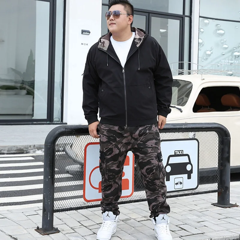 Весенне-осенняя мужская куртка большого размера для увеличения роста, камуфляжные брюки, повседневный костюм, спортивный костюм из двух предметов