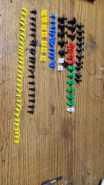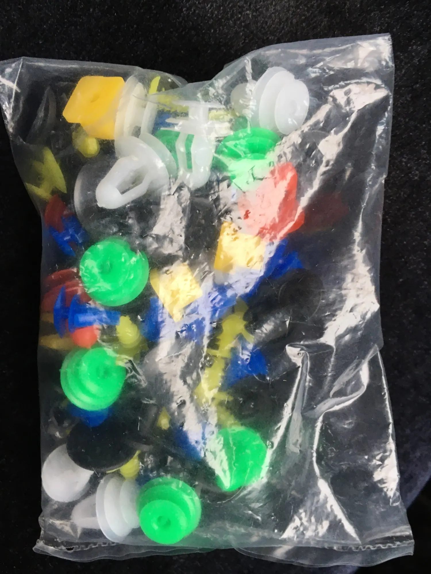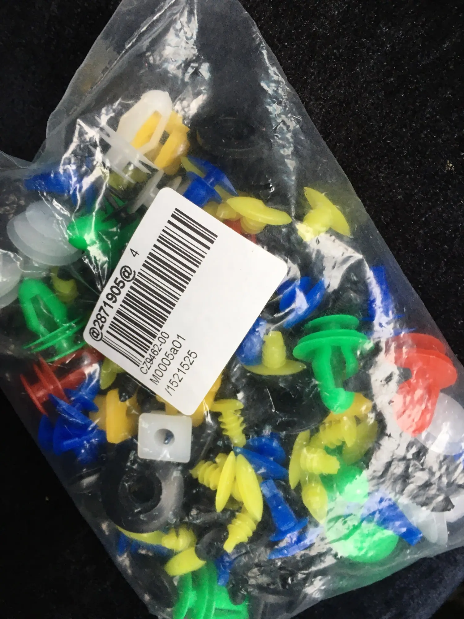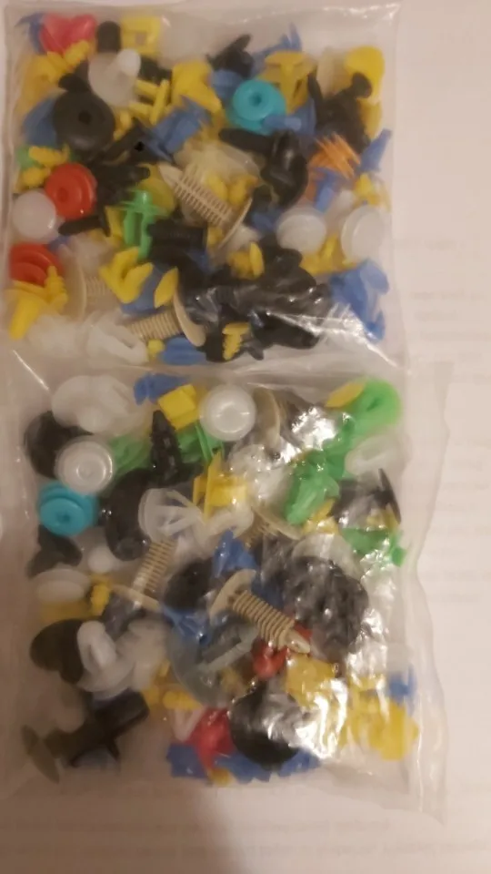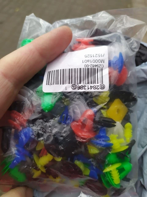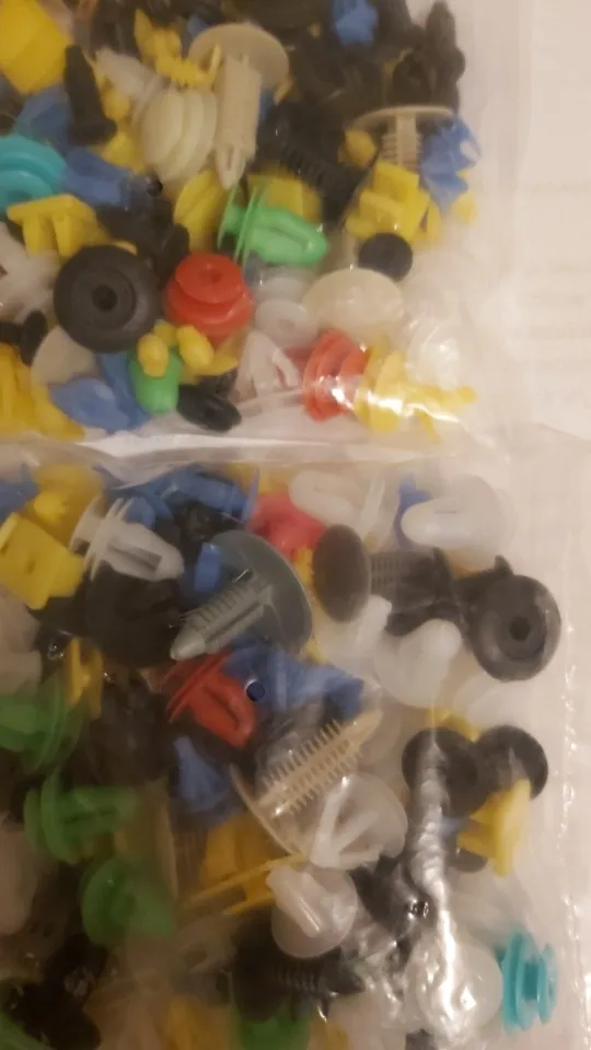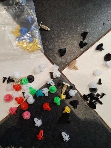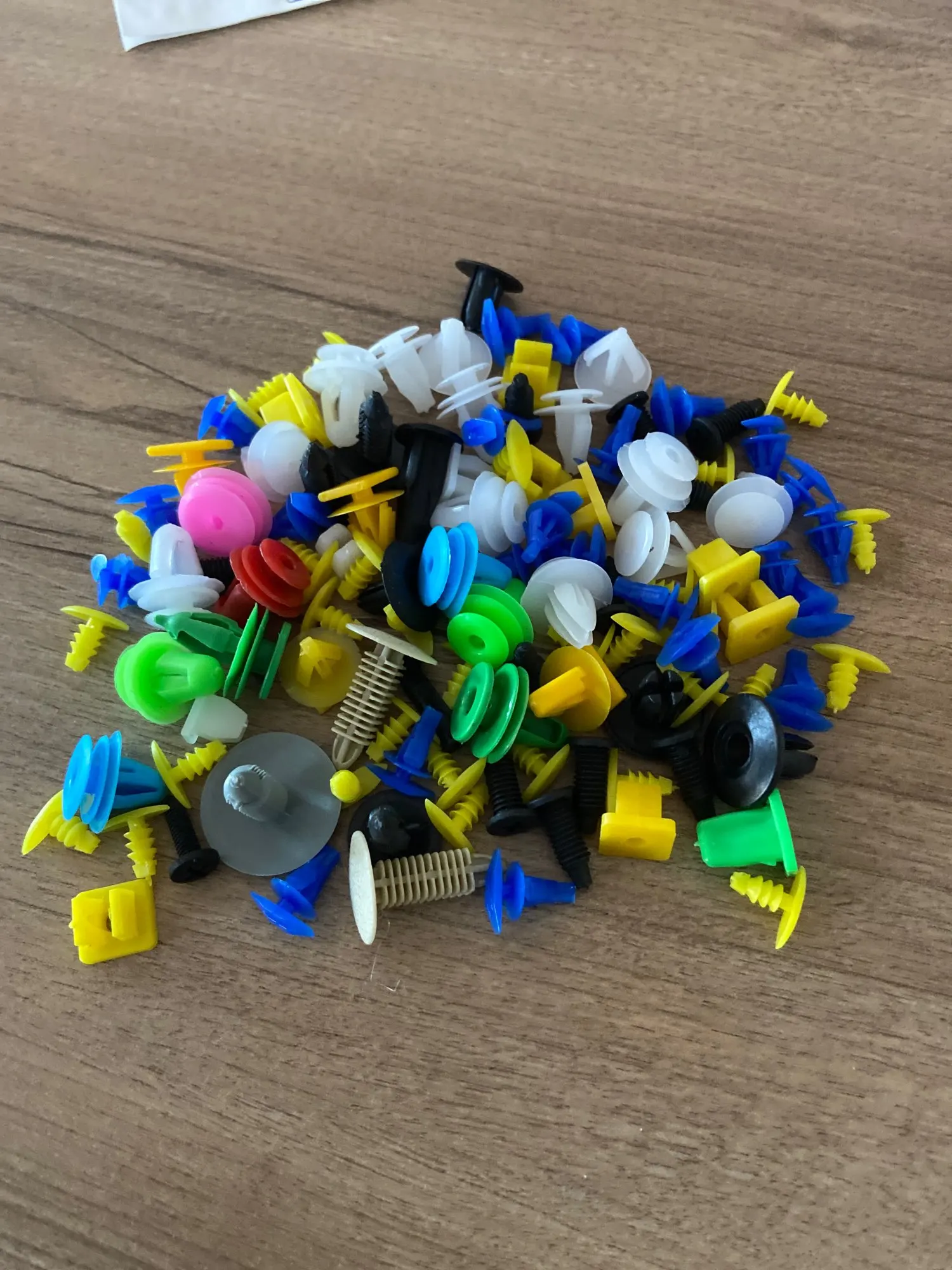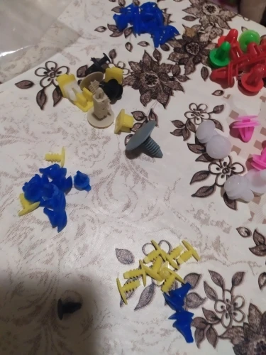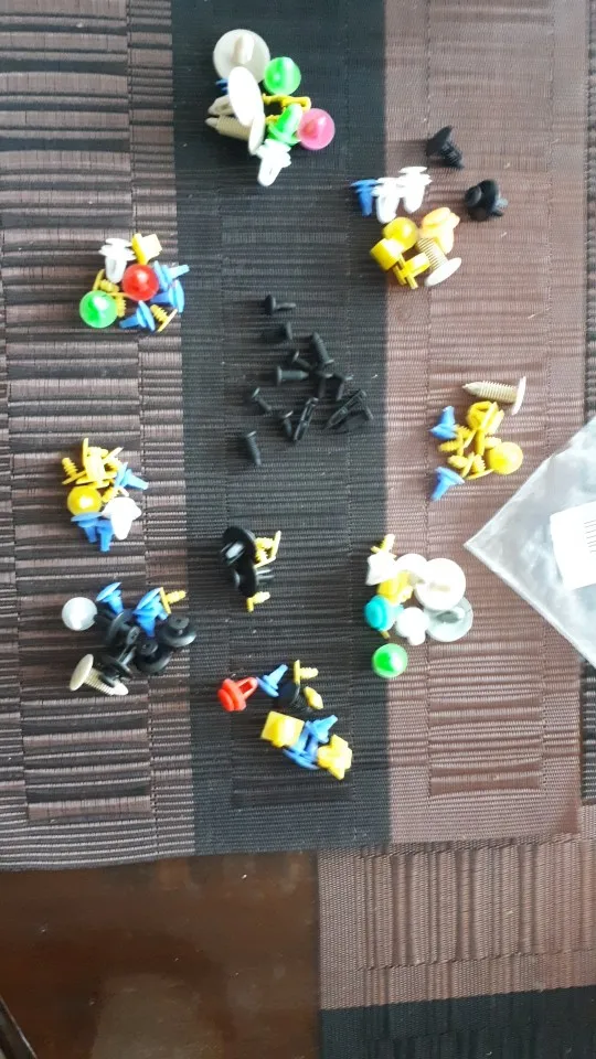 в принципе знал что покупал. из всей кучки пригодятся штук 20..в центре на фото не комплектные фиксаторы (13 штук) т.е. без самого фиксатора а только шуруп пластиковый. ну и до сотни не дотянули пару штук. спорить не буду за копейки.. советую покупать не россыпью а то что нужно...