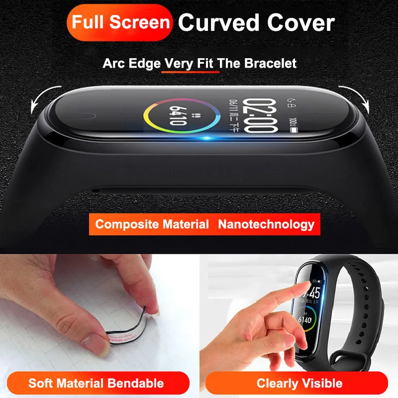 100 шт. для Mi Band 6 5 Защитная пленка 3D полное покрытие для Xiao...