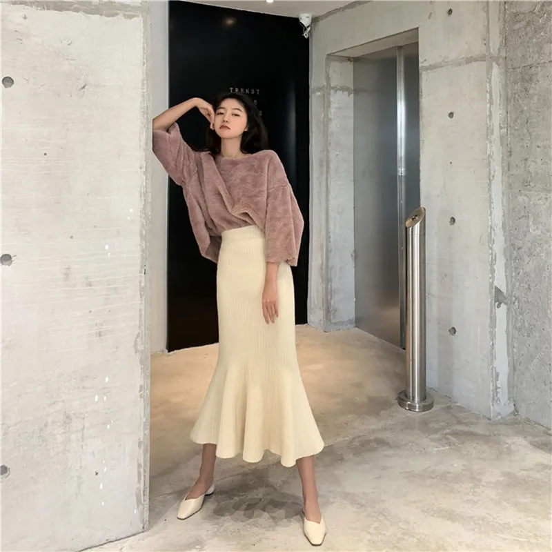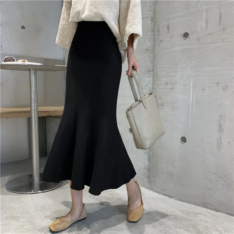 Женская трикотажная юбка-годе, длинная Однотонная юбка с высокой талией на осень и зиму, ML276, 2021