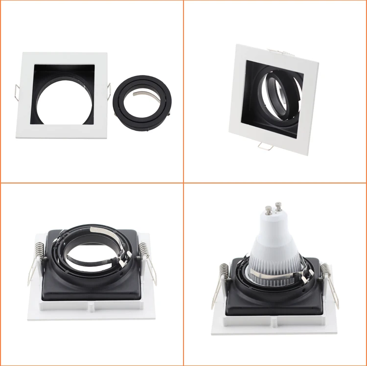 Коммерческий сплав цинка квадратный белый черный регулируемые встраиваемые светильники Светильник рамка светодиодный GU10 MR16 лампа фитинги