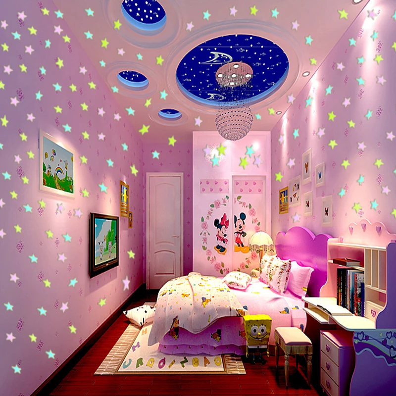100 шт., декоративные флуоресцентные наклейки на стену в виде звезд