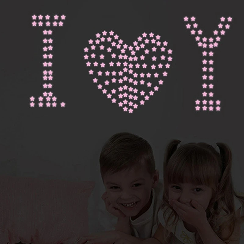 100 шт., настенные наклейки со звездами, светится в темноте, детская спальня, гостиная, домашние независимые светящиеся наклейки «сделай сам» (Размер: 3 см)