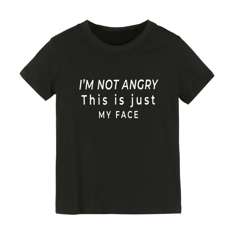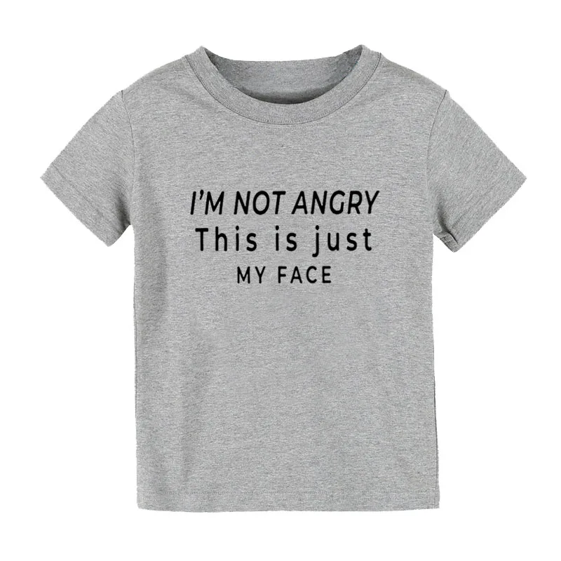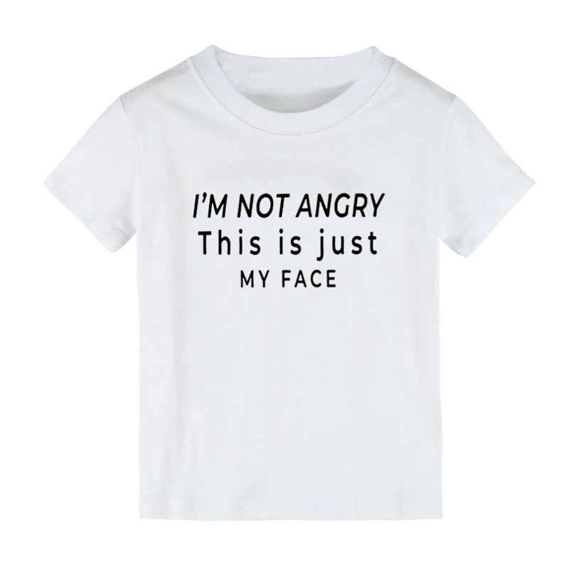 Детская футболка с принтом I'm not angry this is just my face рубашка для мальчиков и девочек детская одежда для малышей забавные уличные футболки CZ-161