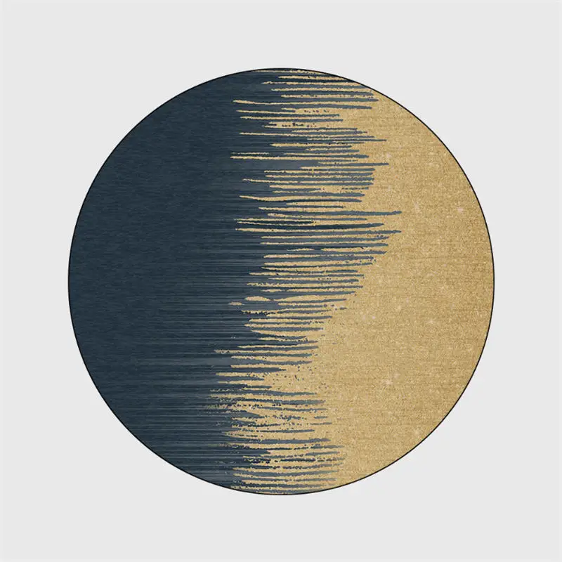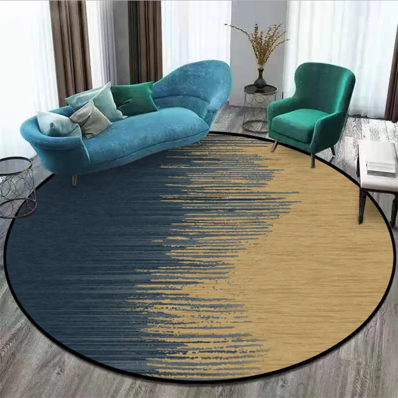 Круглые ковры и ковровые покрытия в скандинавском стиле для домашней гостиной, нескользящий круглый ковер с абстрактным синим золотым узором, Рождественский ковер, 100% полиэстер