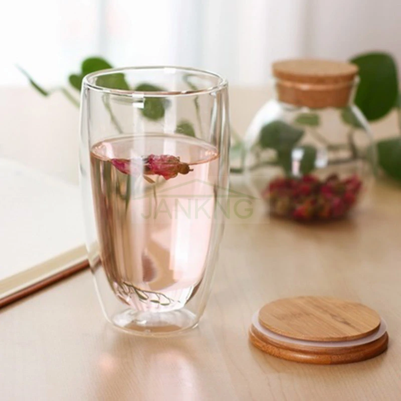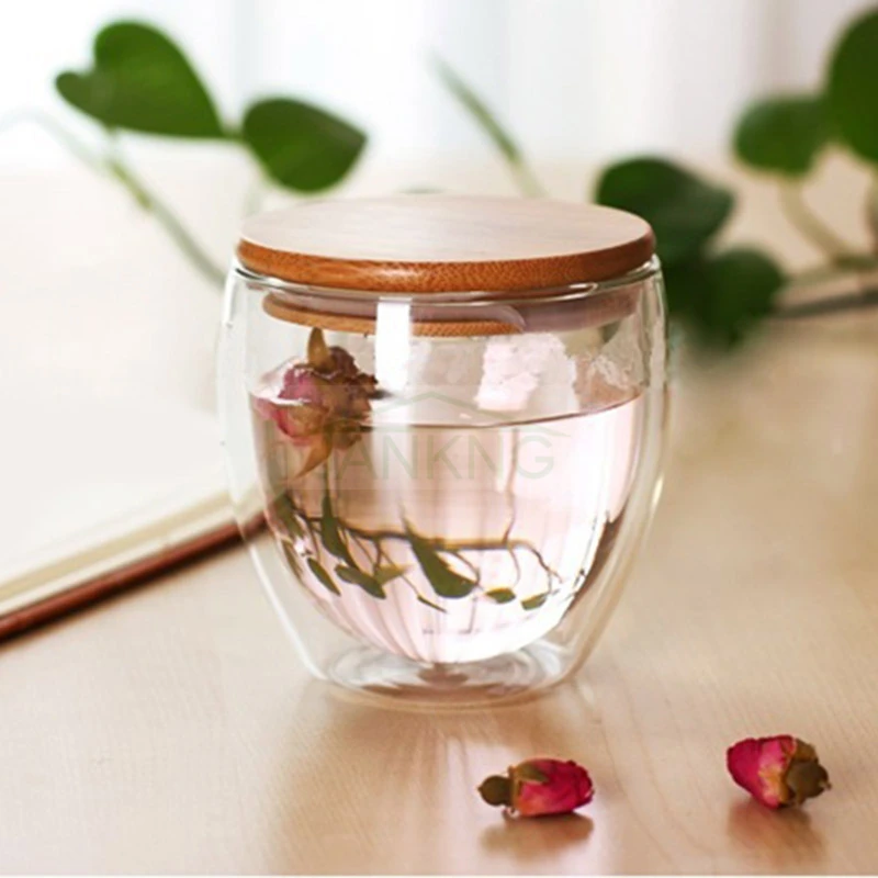 1 шт. креативная двухслойная стеклянная крышка из бамбука, термостойкая прозрачная чашка, посуда для напитков, кофейное стекло, персонализированная кружка