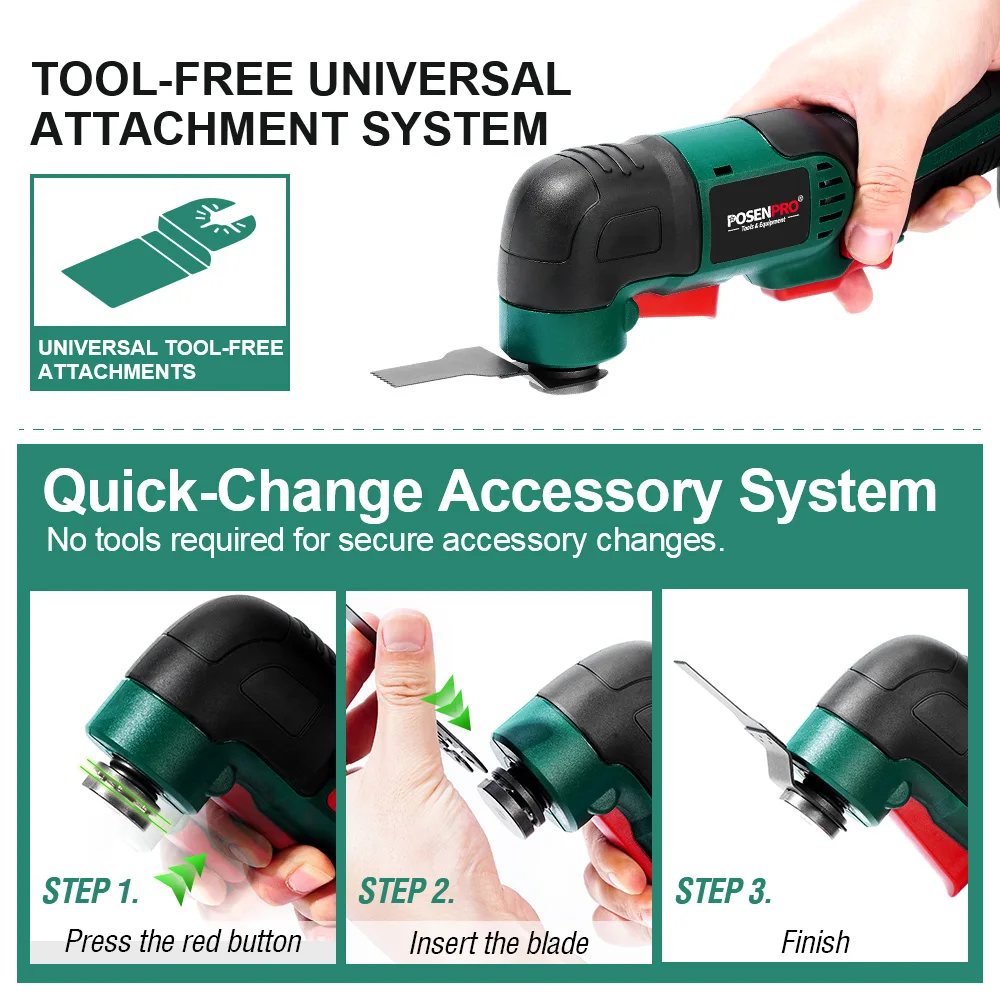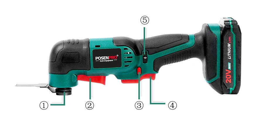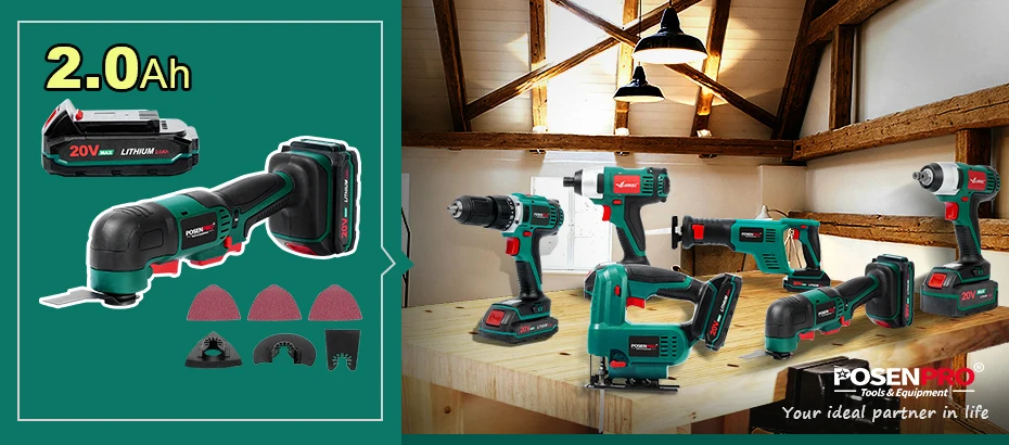 Осциллирующий многофункциональный инструмент POSENPRO, 20 в, для ремонта дома, 2 А ч, с литий-ионным аккумулятором и аксессуарами