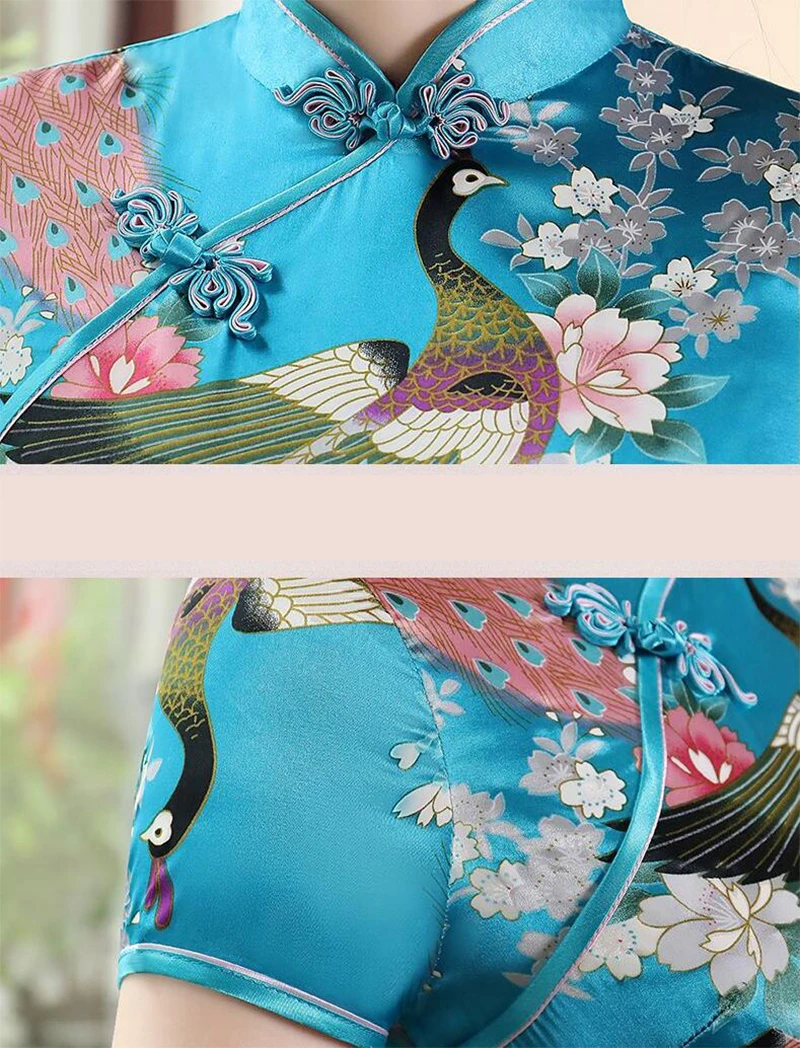 Платье Ципао женское средней длины с принтом павлина, с воротником-...