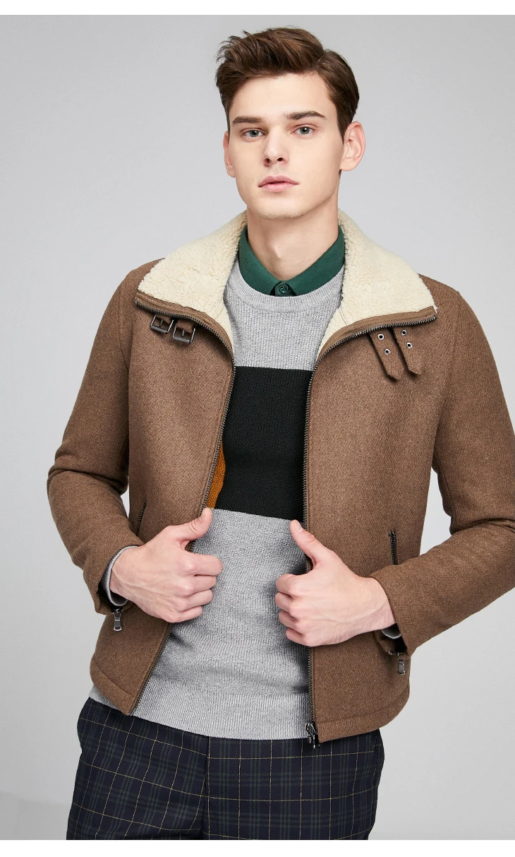 Мужская шерстяная куртка на молнии, с воротником-стойкой, S 419427548