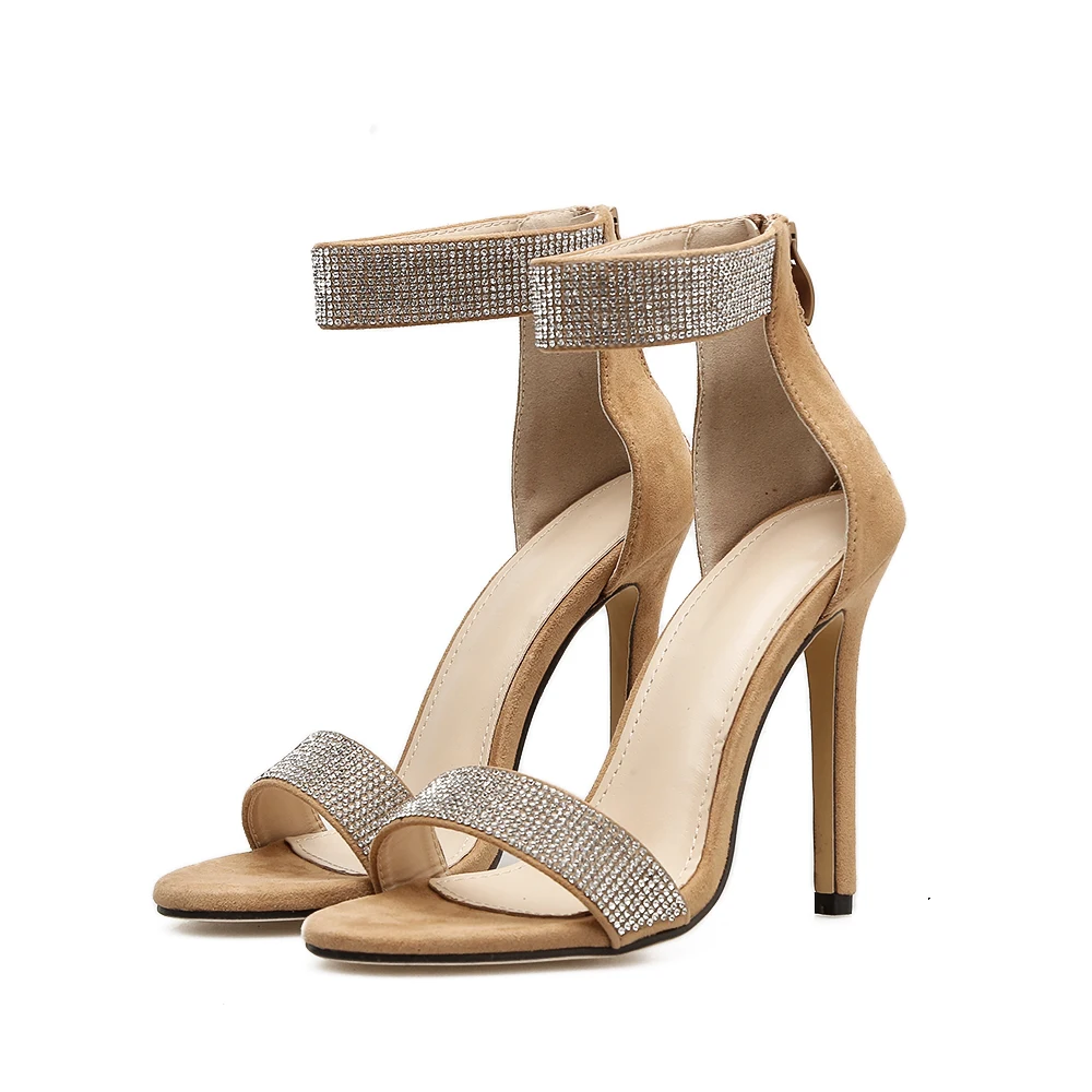 Женские босоножки на высоком каблуке, со сверкающими абрикосовыми черными бриллиантами, босоножки на высоком каблуке, лето 2019, пикантные Клубные босоножки, 35-43
