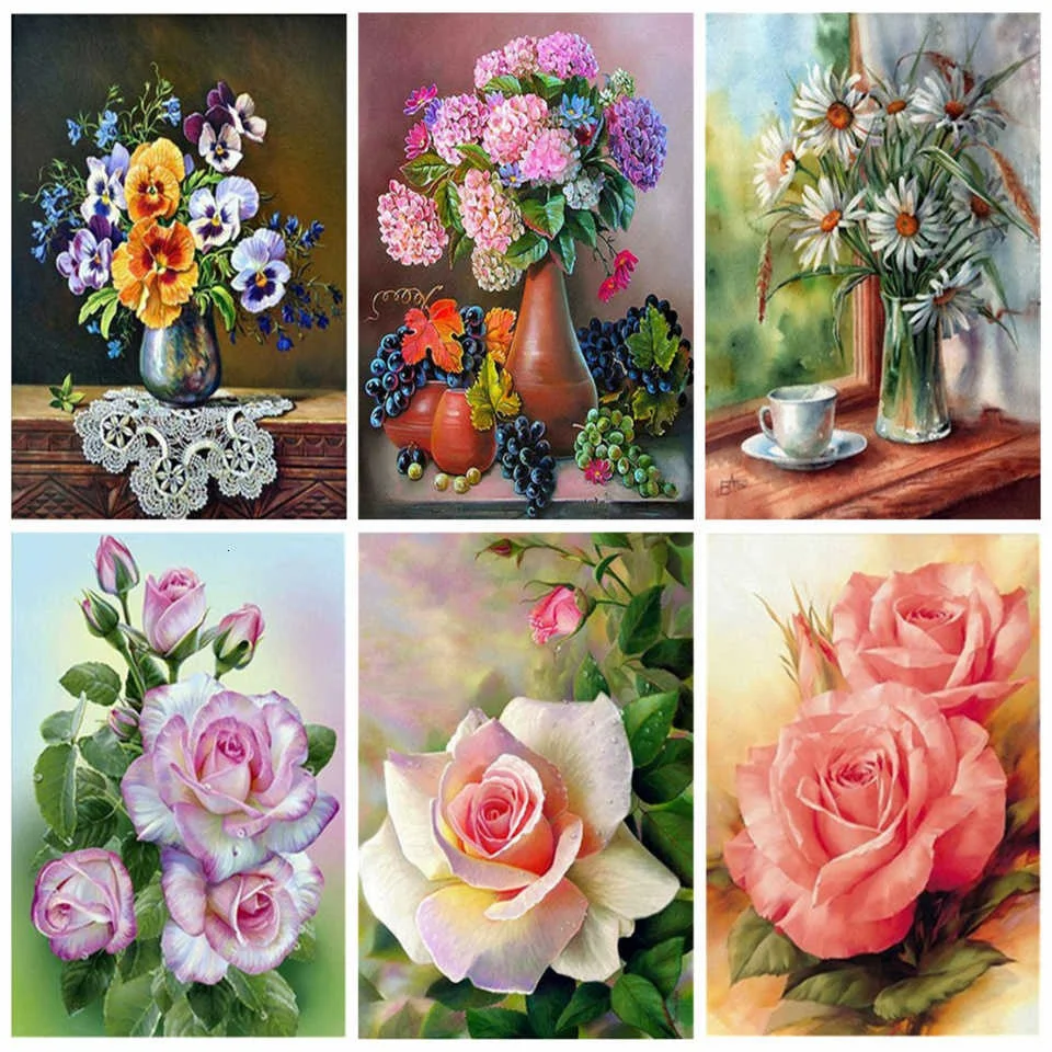 AZQSD полностью квадратная 5D алмазная вышивка цветок украшение дома алмазная живопись Ваза картина Стразы DIY подарок ручной работы