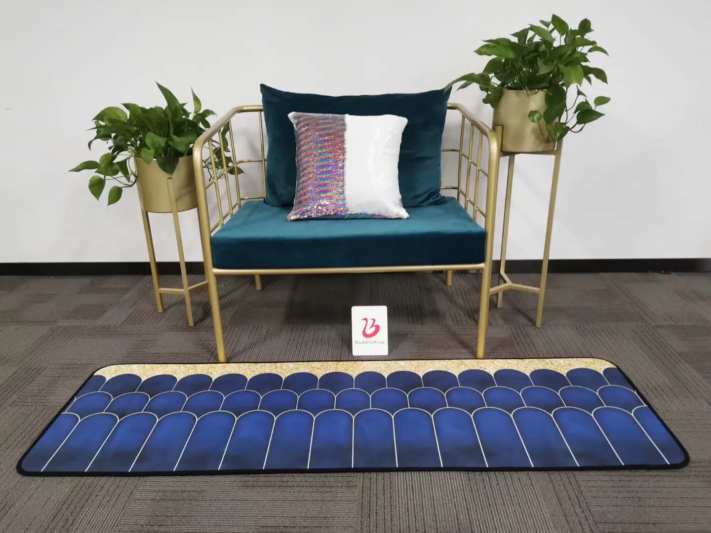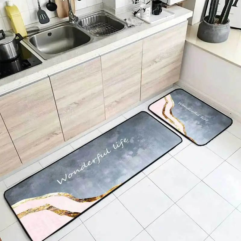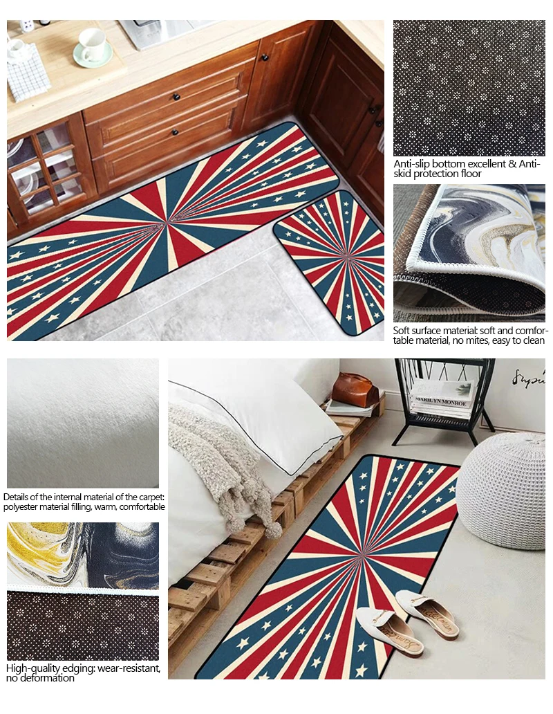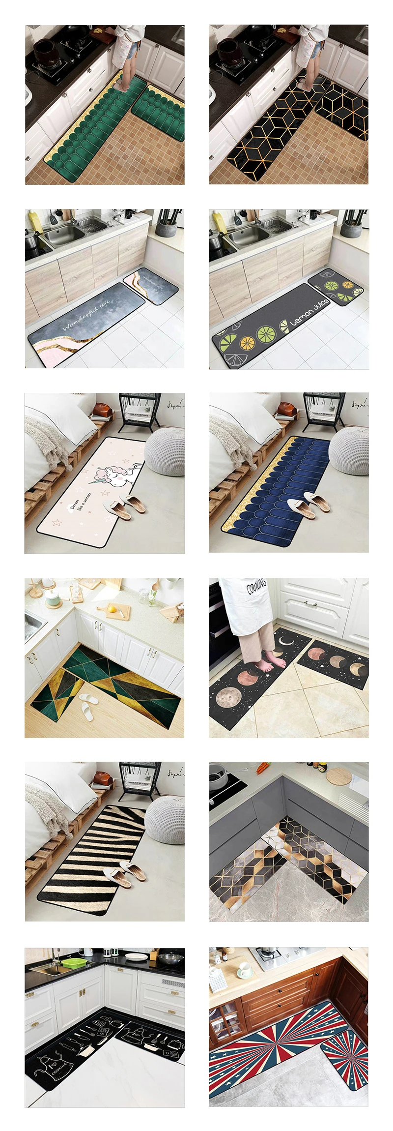 (1) противоскользящая и износостойкая, поглощающая воду и масло. (2) легко чистить, можно использовать стиральную машину или стирать вручную. (3) экологически чистая печать и окрашивание, без вредных веществ. (4) мягкий ковер, который можно сложить для хранения.