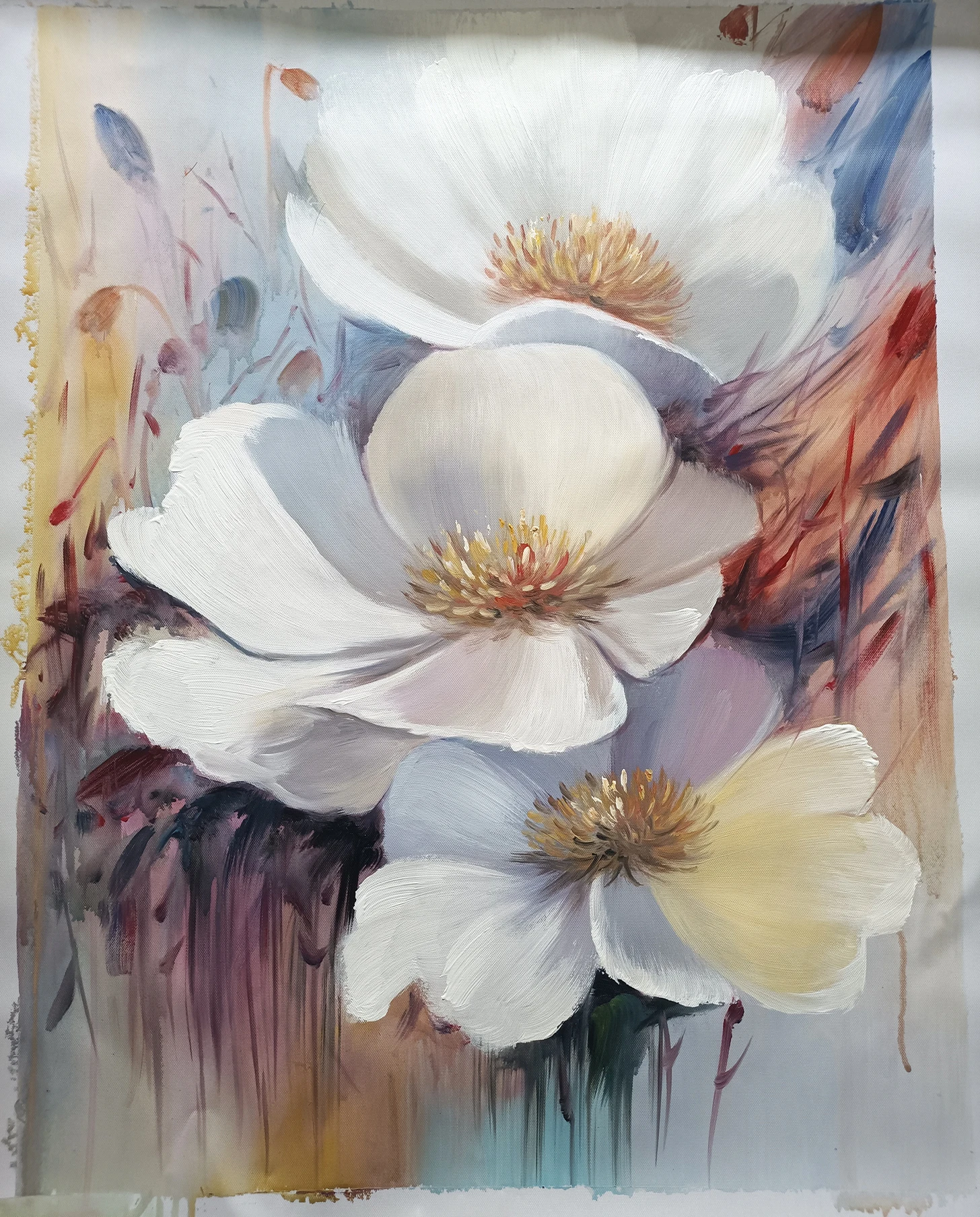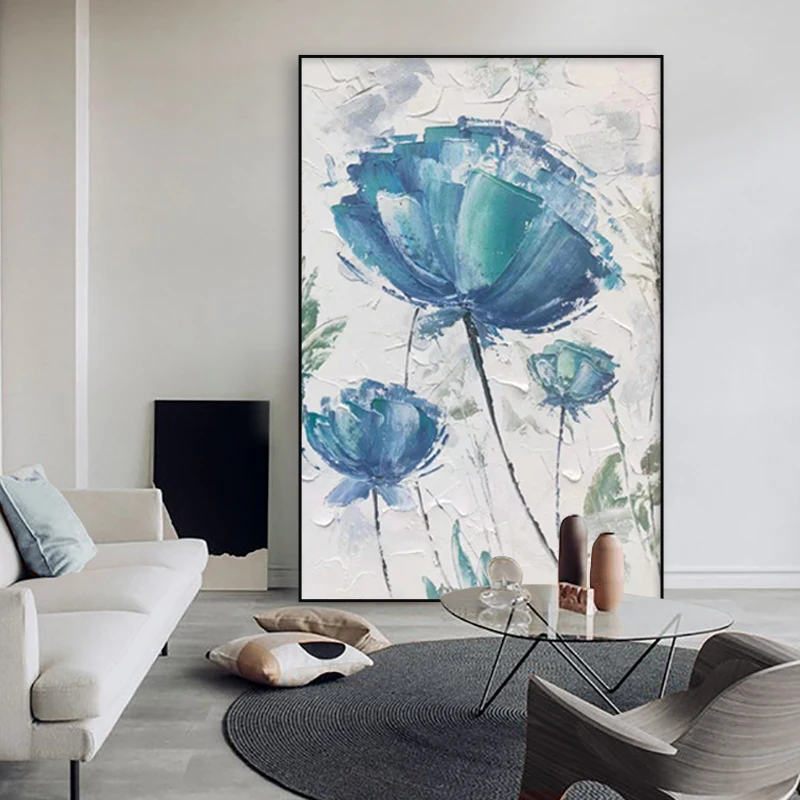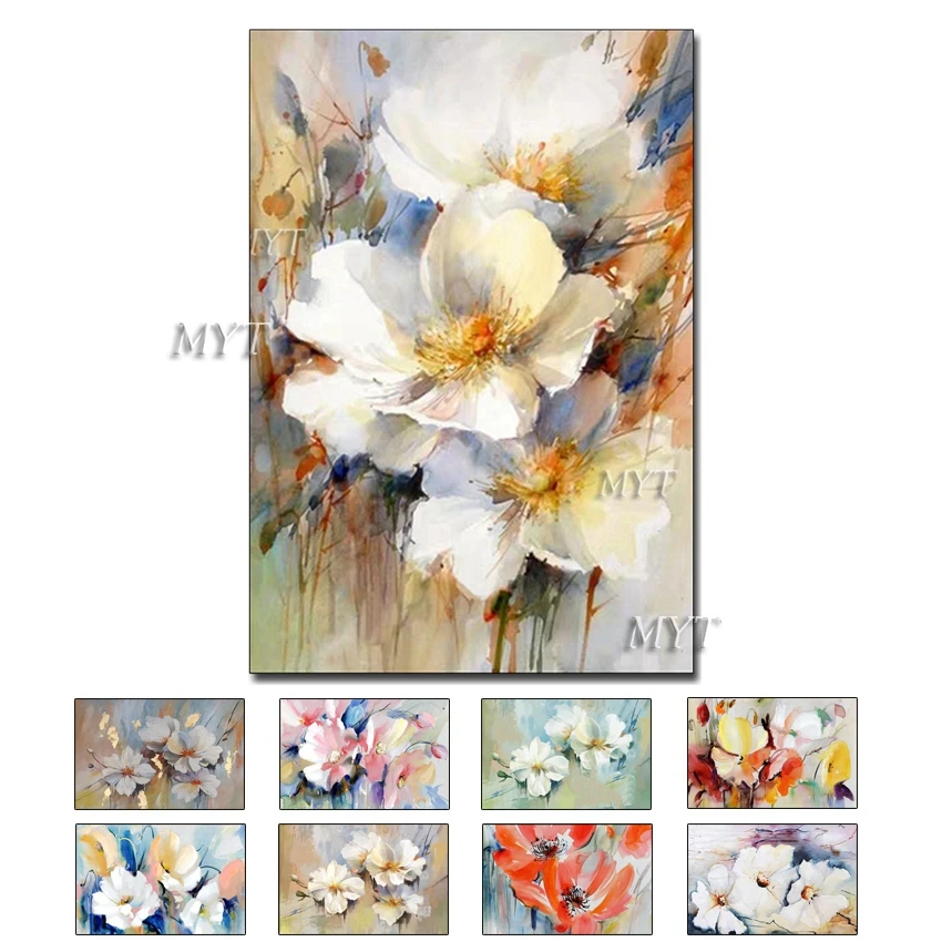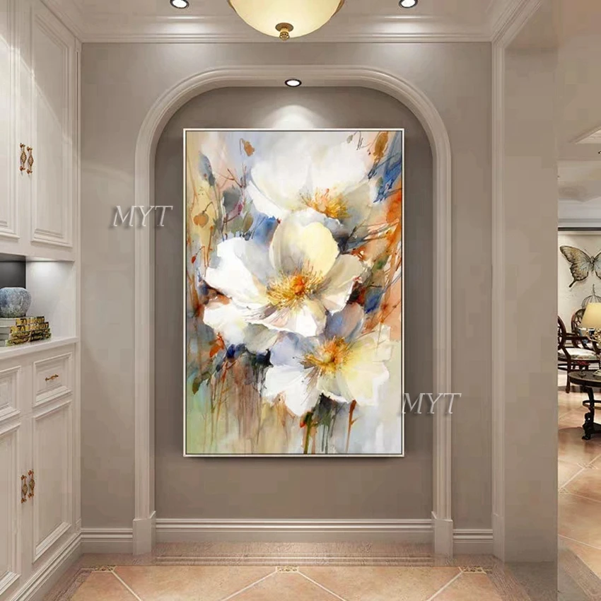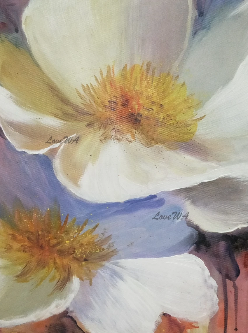 Три белых цветка абстрактная картина маслом Современная ручная роспись Настенная картина для гостиной украшение дома картина без рамки