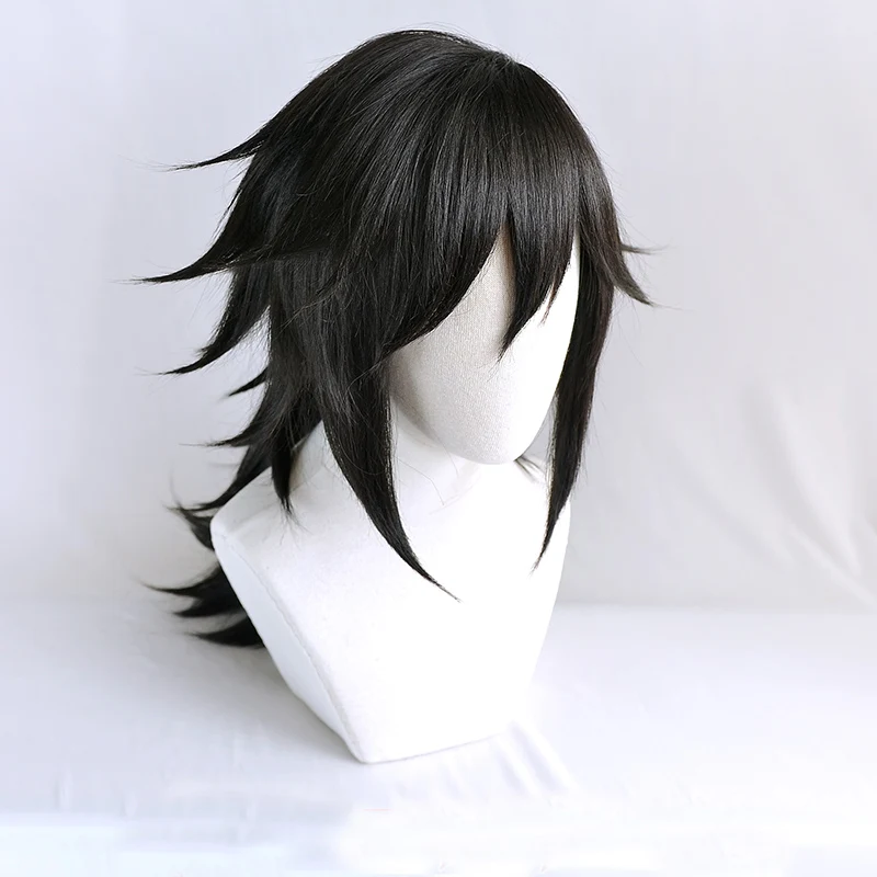 Tomioka Giyuu короткий черный парик «конский хвост» аниме «истребитель демонов», термостойкие волосы Kimetsu no Yaiba, парики для костюма для косплея и шапочка для парика