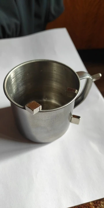 Товар приехал с опозданием, тут ничего нового. Кружка вся в царапинах, дно гнётся. Для горячих напитков использовать не рекомендую