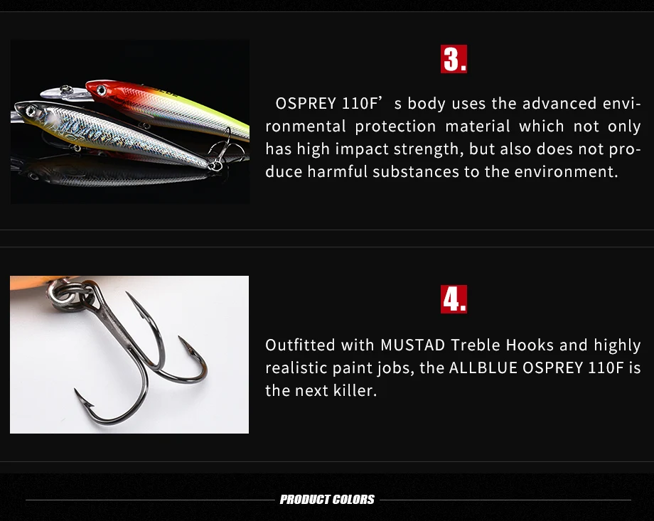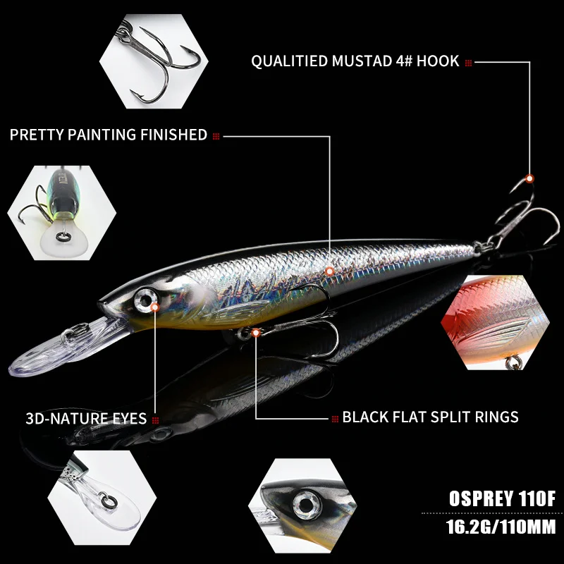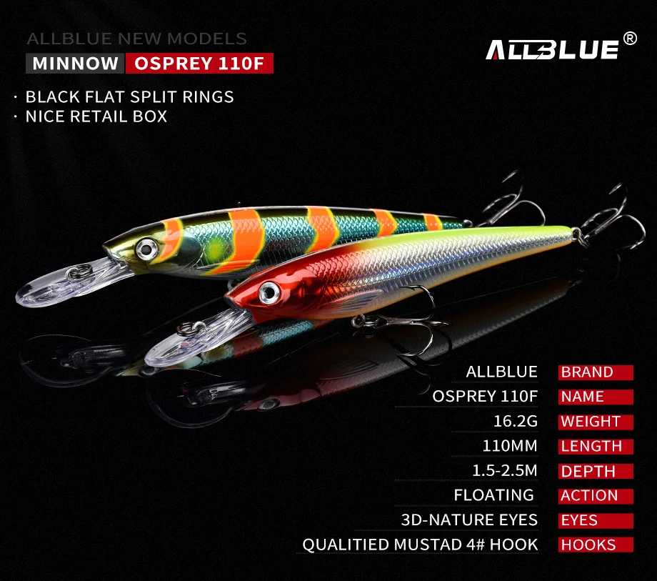 Искусственная приманка ALLBLUE OSPPEY, 110F, троллинг на маленькую рыбешку, 110 мм, 16,2 г, рыболовные приманки плавающий, воблер на щуку, на глубину 1,5-2,5 м